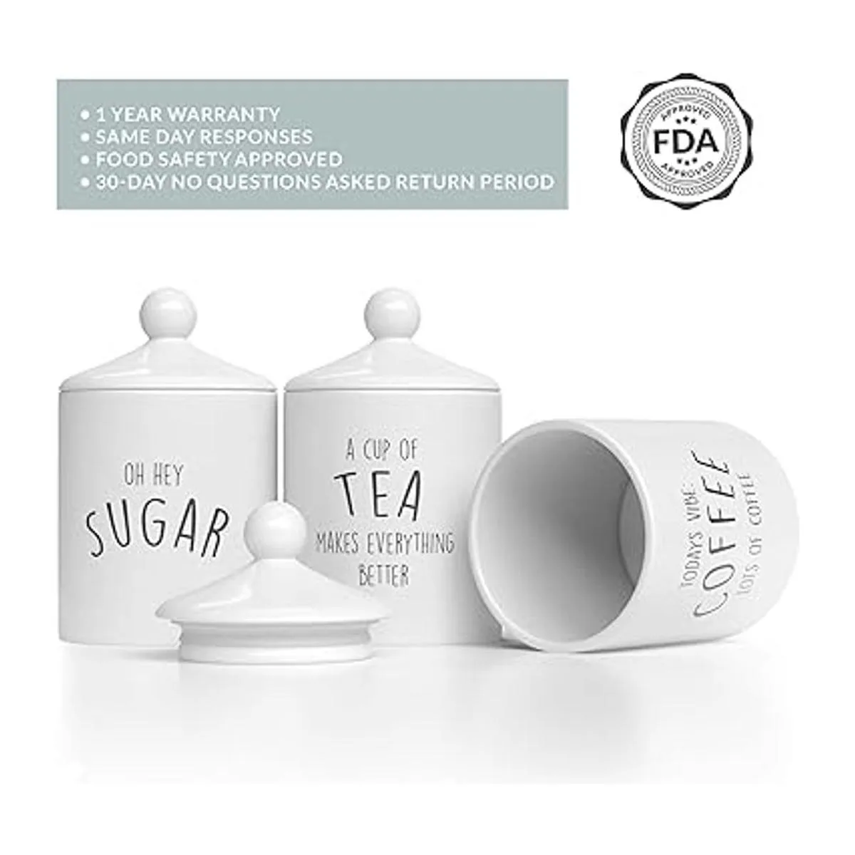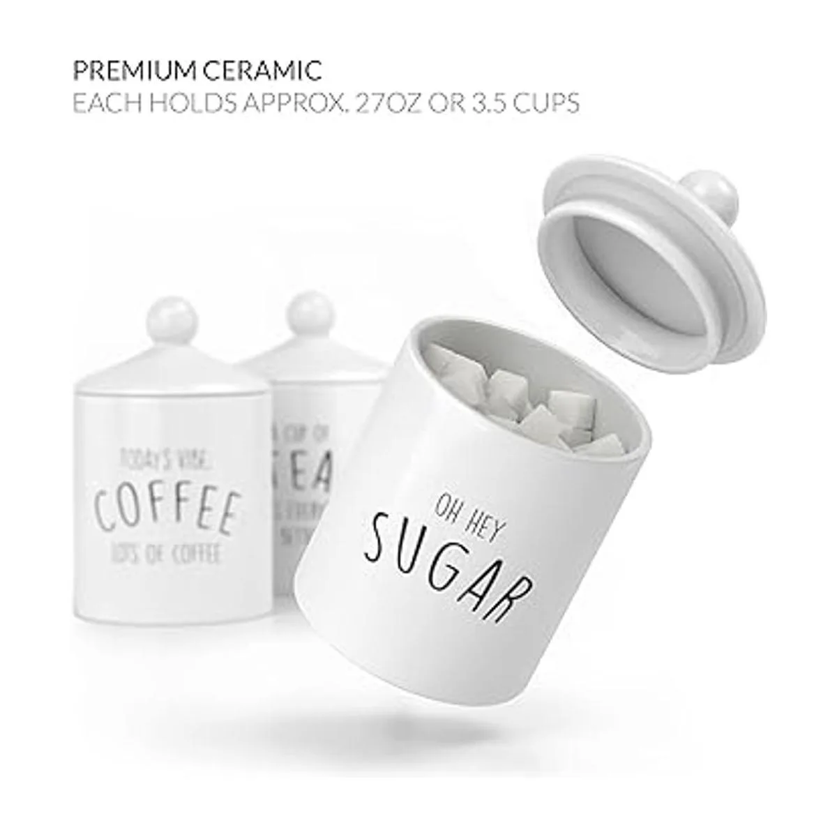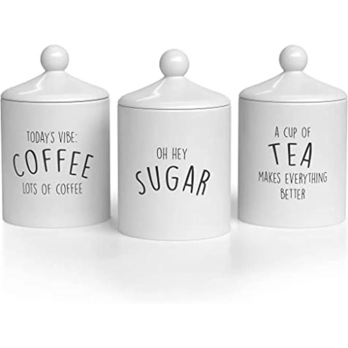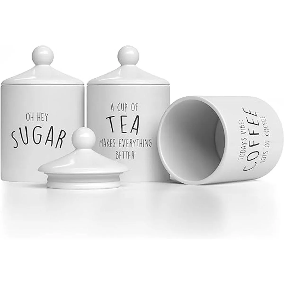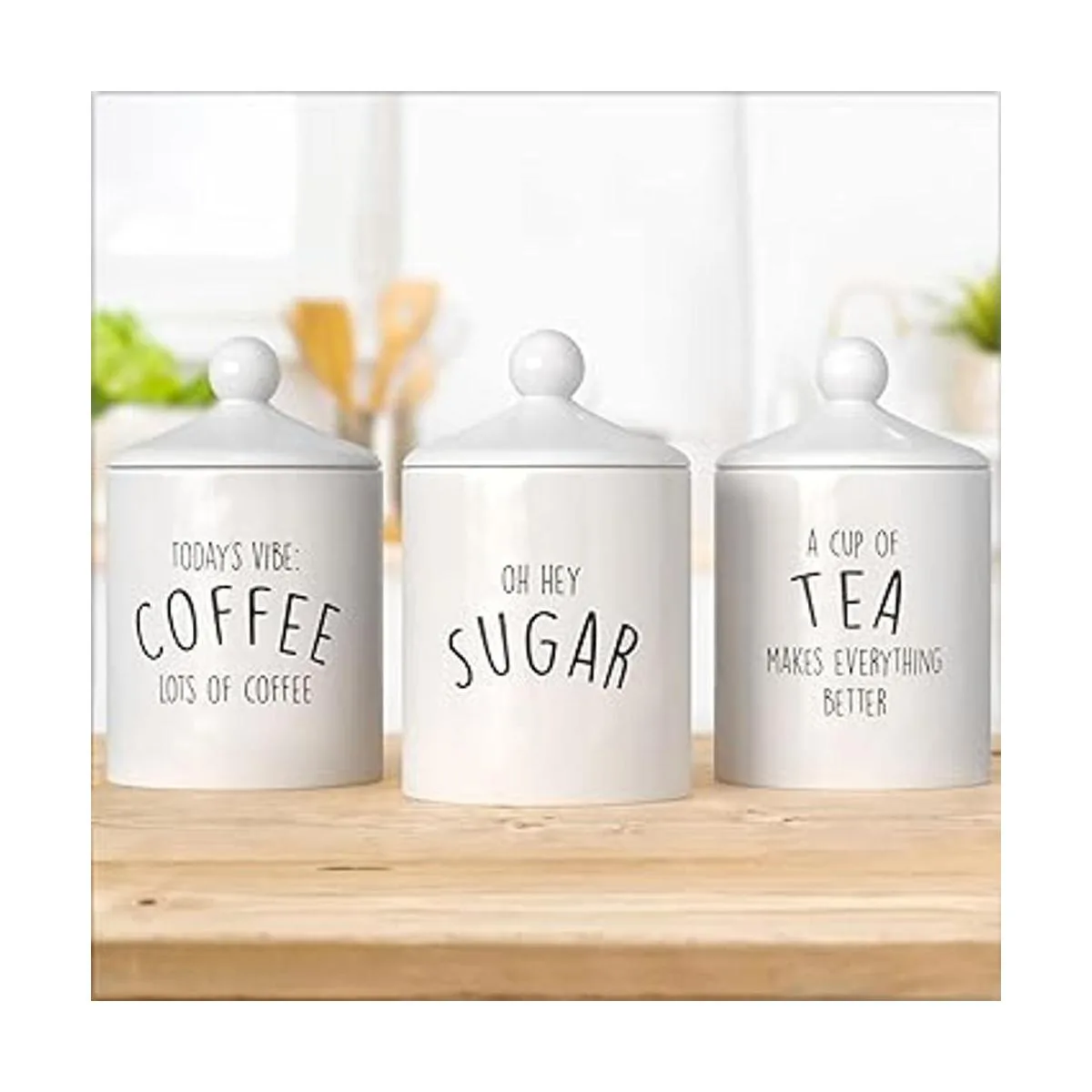Juego de recipientes de cocina de cerámica: nuestros juegos de recipientes para encimera de cocina son ideales para contener café, azúcar, té o incluso harina. Este elegante juego de 3 botes de cocina de cerámica está impreso con un texto rústico que les da un encanto vintage.