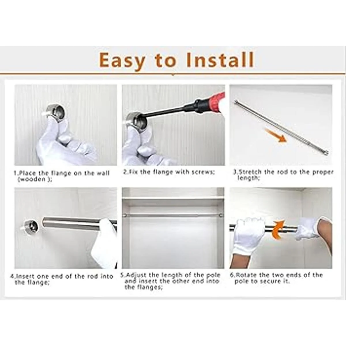 Barra de armario ajustable: se expande de 18 a 30 pulgadas con un simple giro. Perfecto para colgar ropa y organizar tu armario de madera solo tienes que aplicarlo al armario de madera, necesitas montarlo en las paredes y requiere herramientas para montarlo.