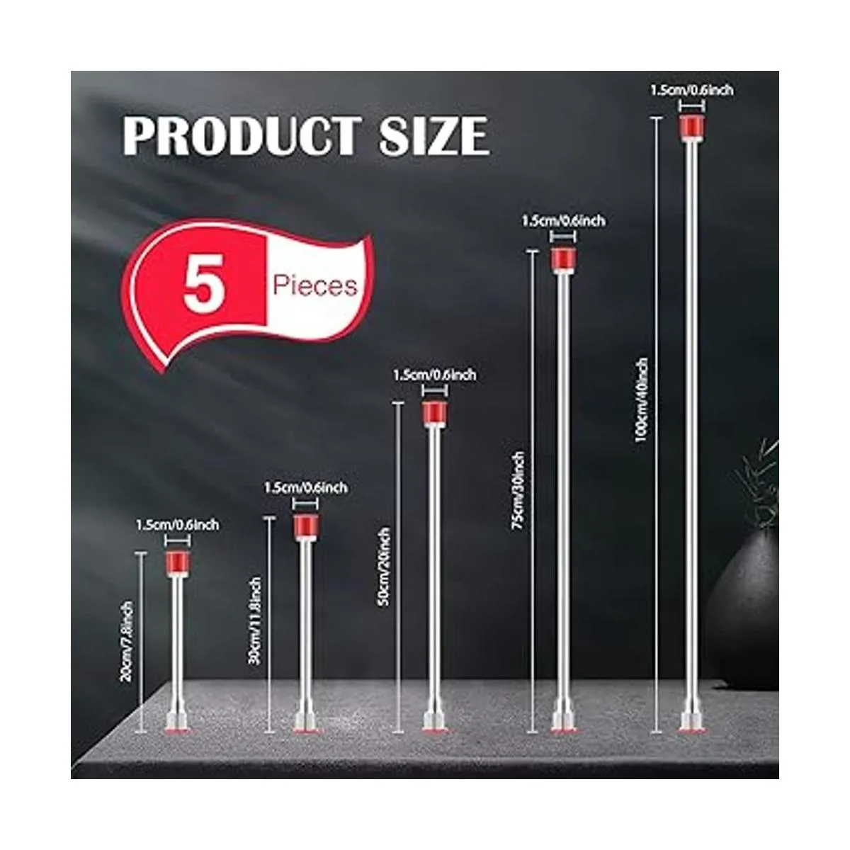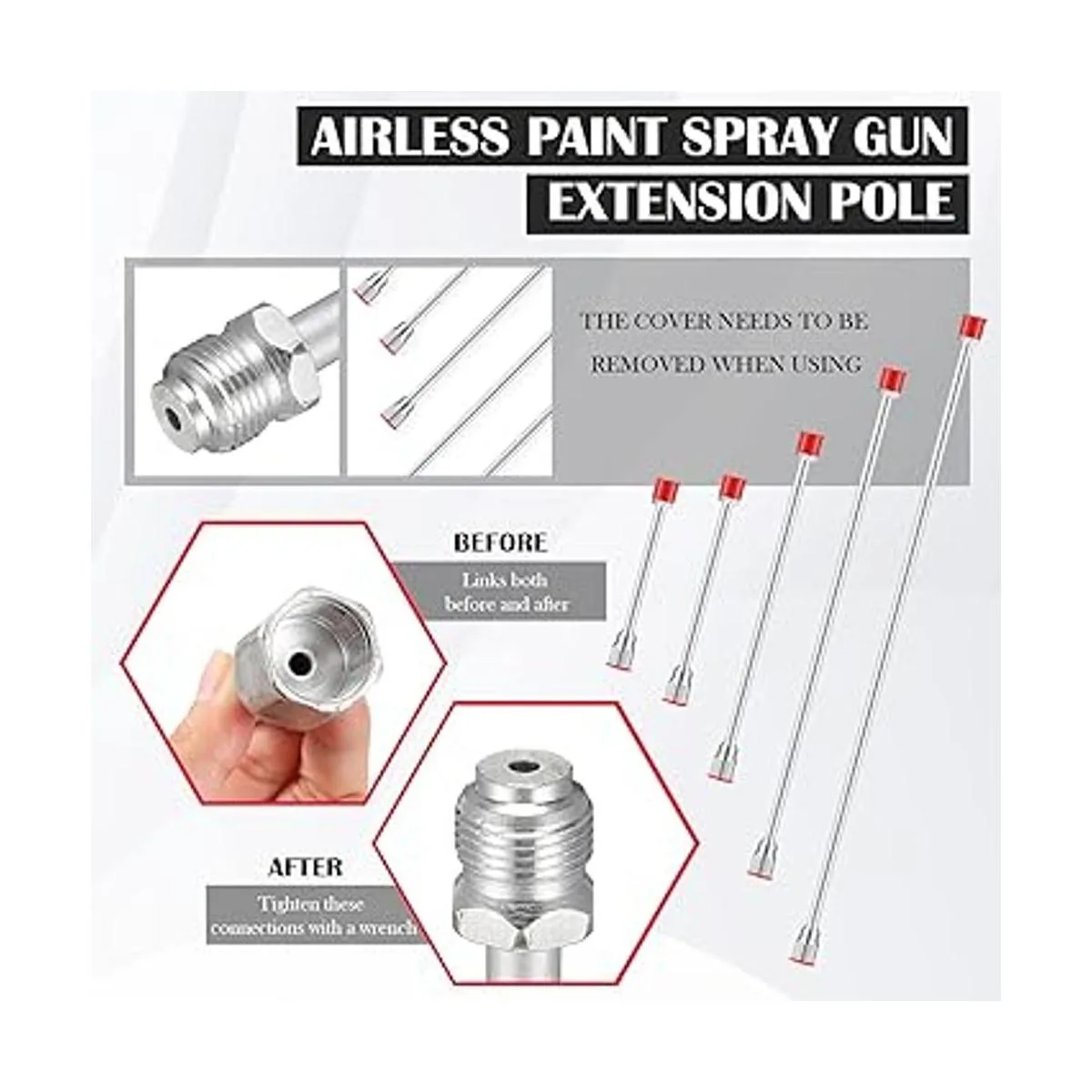 Barra de extensión de punta de rociador de pintura sin aire, 5 tamaños, para pistola de pintura sin aire, con protector rojo, 40 pulgadas, 29.95 pulgadas, 20 pulgadas, 12 pulgadas, 7.8 pulgadas