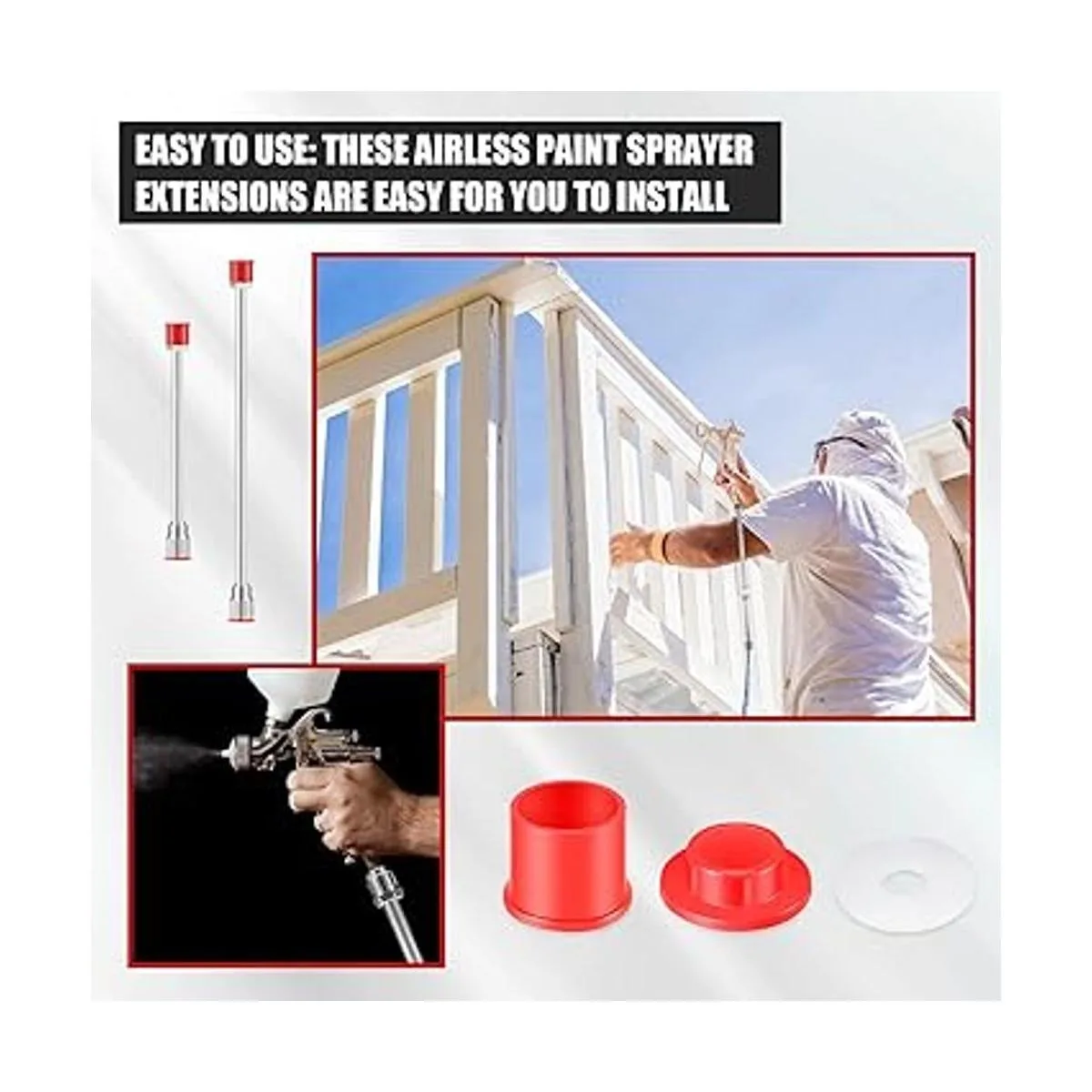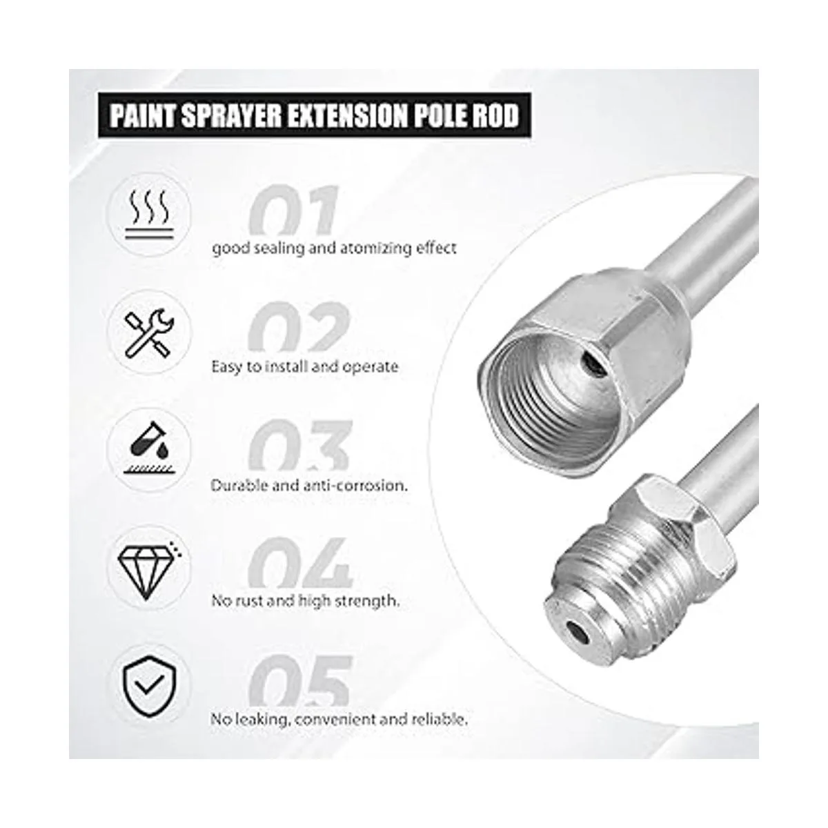 Fácil de usar: estas extensiones de pulverizador de pintura sin aire son fáciles de instalar, y el acabado de rosca está limpio, solo tienes que apretar estas conexiones con una llave, útil para ti cuando pintas el techo