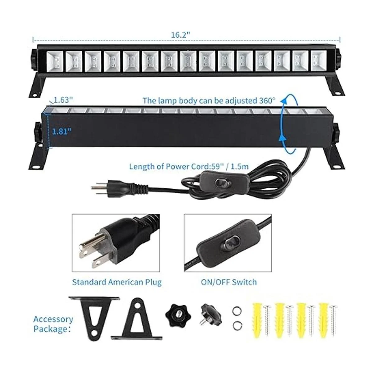 Barra de luz LED negra mejorada de 36 W, luz de inundación LED negra de alta calidad con enchufe, interruptor cable de 5 pies, área de iluminación de 21 x 21 pies, para Halloween, fiesta fluorescente, dormitorio, sala de juegos, pintura corporal, iluminación de escenario