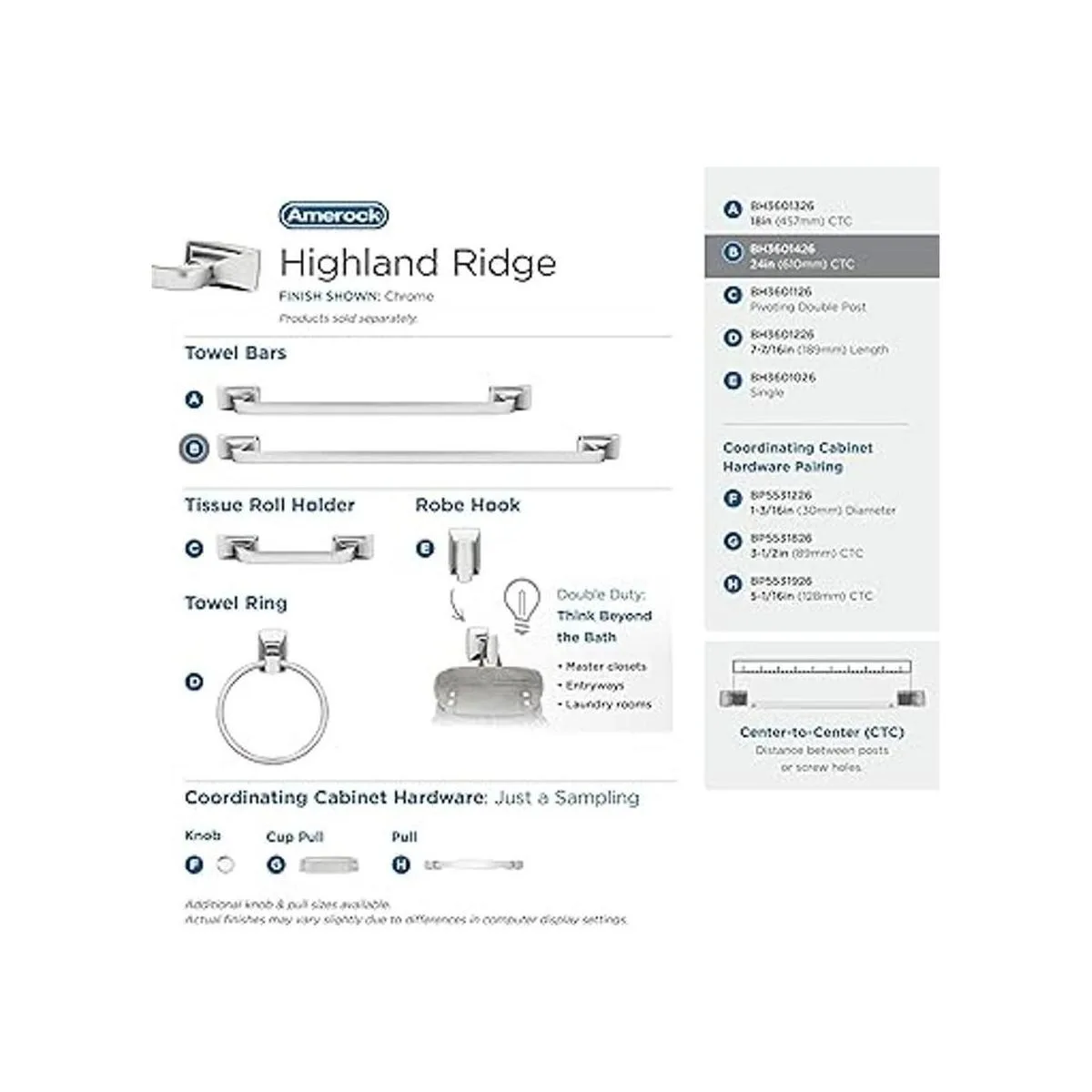 Barra de toalla Highland Ridge Chrome de transición de 24 pulgadas 24.016 in