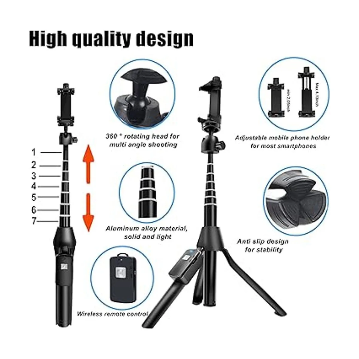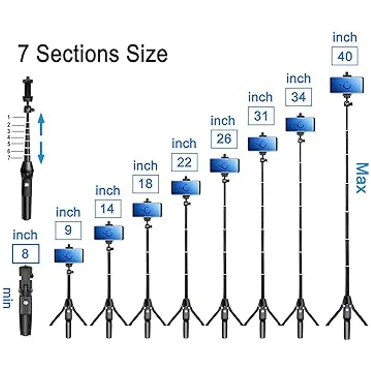 Palo selfie 3 en 1 y soporte de trípode: el trípode para selfie se puede extender entre 8.07 y 40 pulgadas, lo que lo hace muy adecuado para fotografía, tiempo de cara, negocios, transmisión de vida más. Cuenta con un mango de mano totalmente expandible con patas plegables integradas que le permiten doblarse como un trípode independiente cuando se abre. Puedes cambiar fácilmente entre el modo de palo selfie y el modo de trípode del teléfono para tu uso preferido.