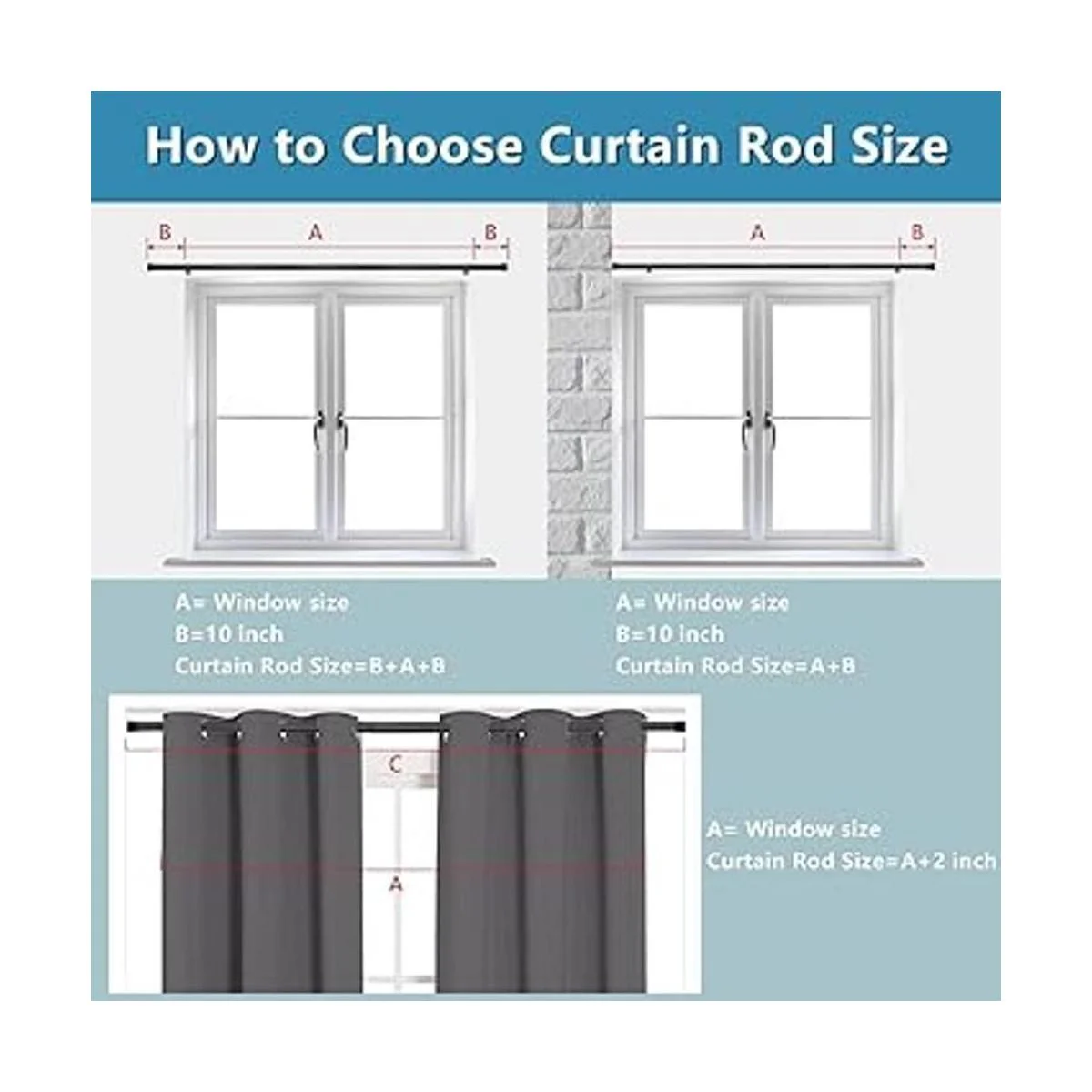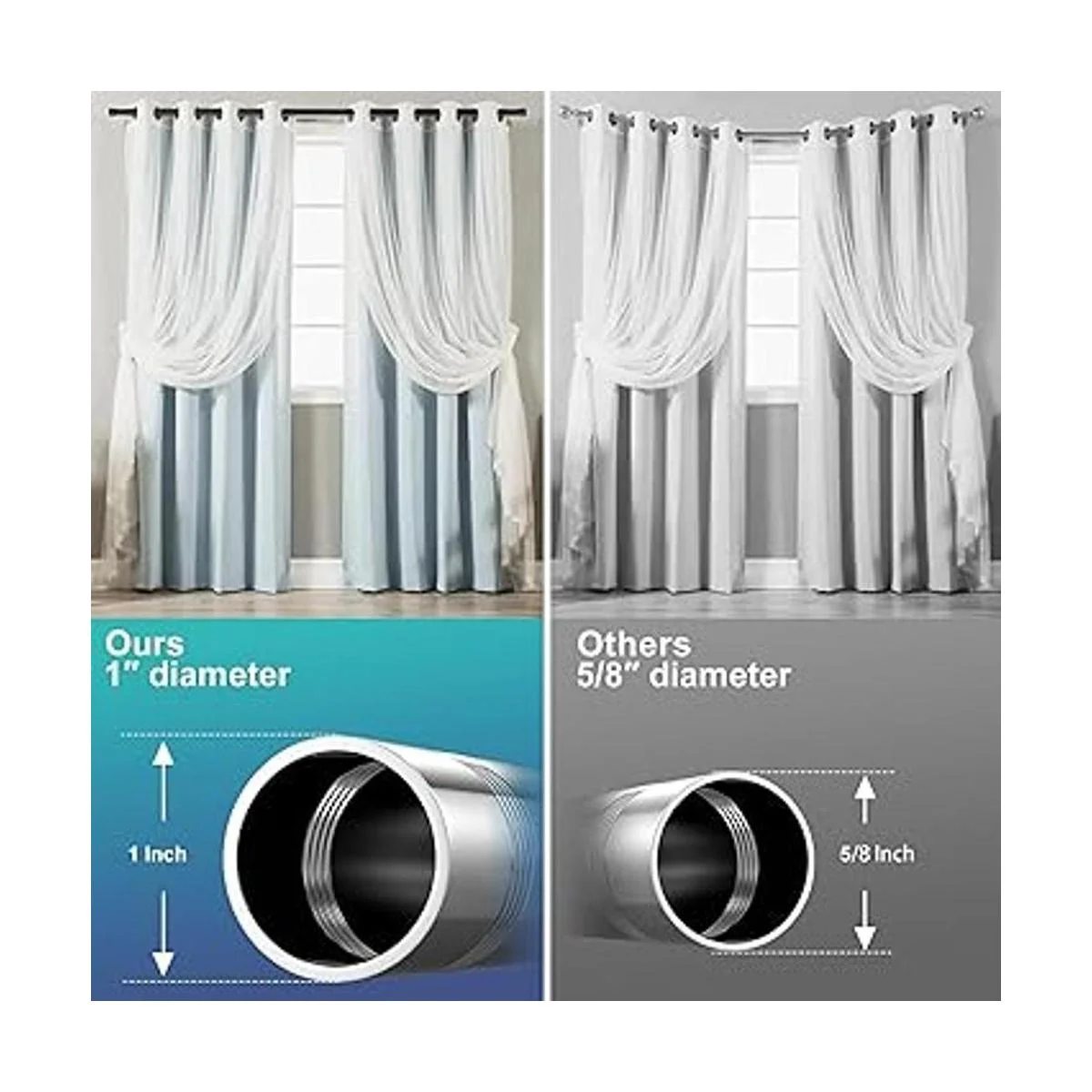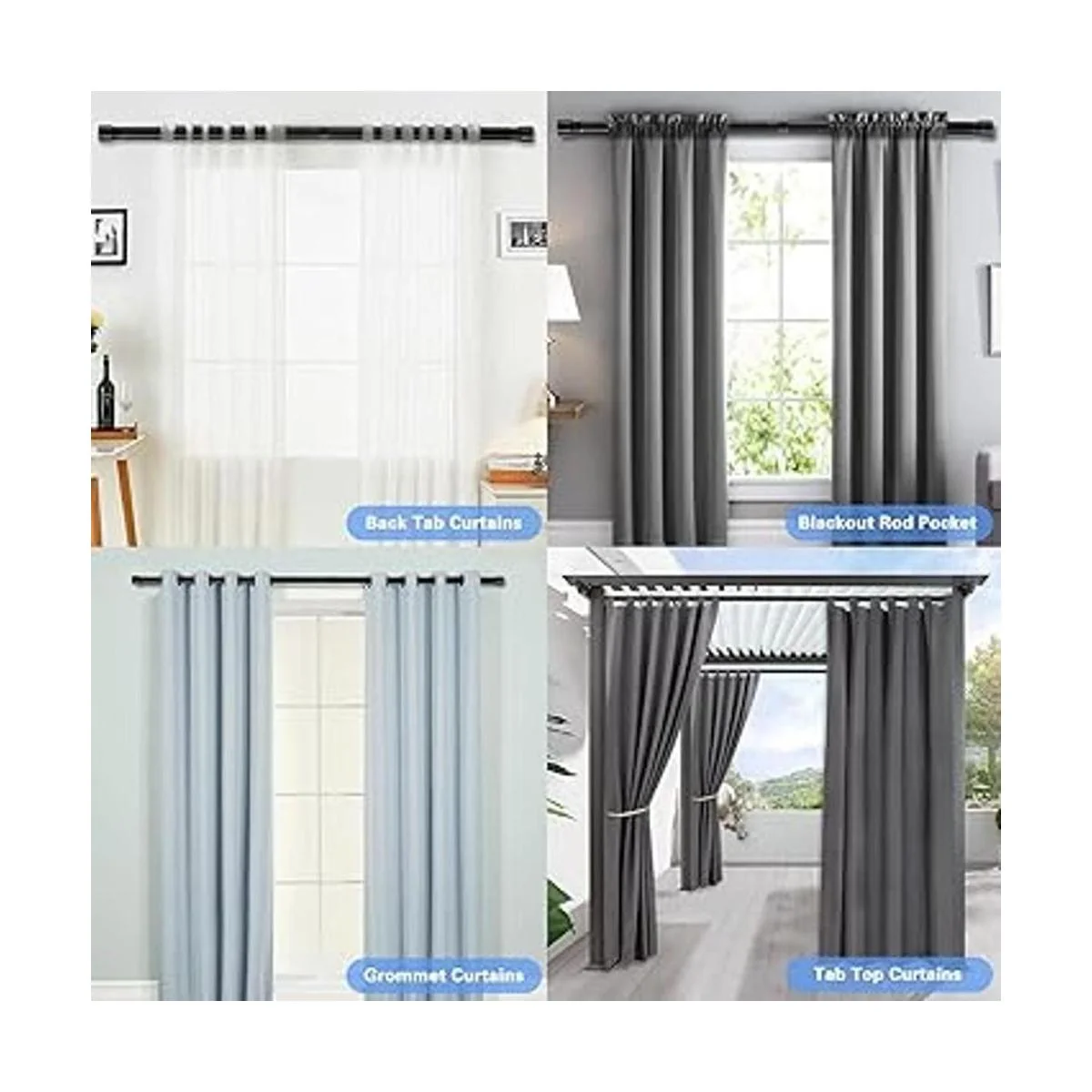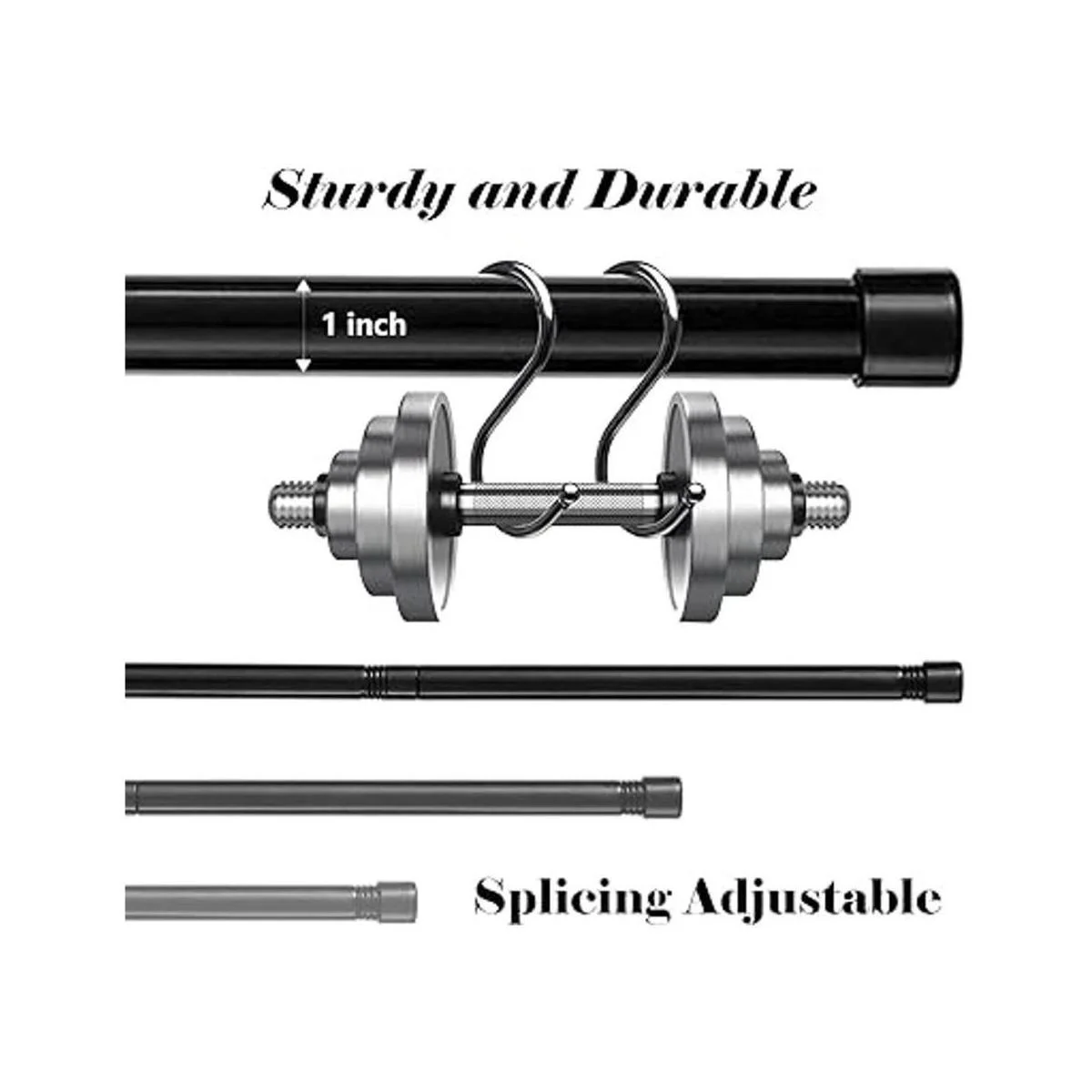 Longitud duradera y ajustable Nuestra barra de cortina extensible negra está hecha de acero inoxidable resistente, cada barra seccional de 1 pulgada de diámetro se solapa y se atornilla en la siguiente, lo que refuerza la unidad y permite una longitud personalizada.