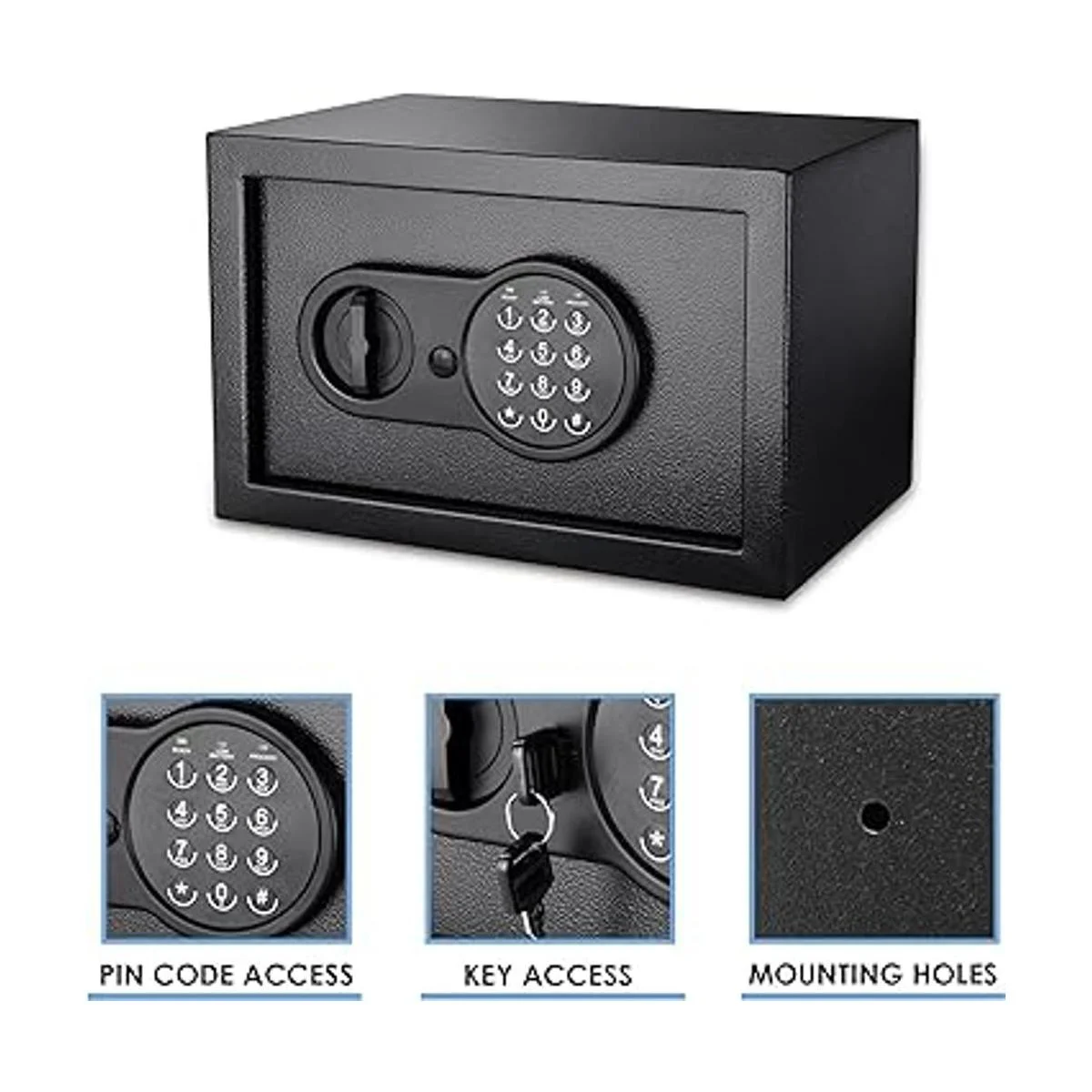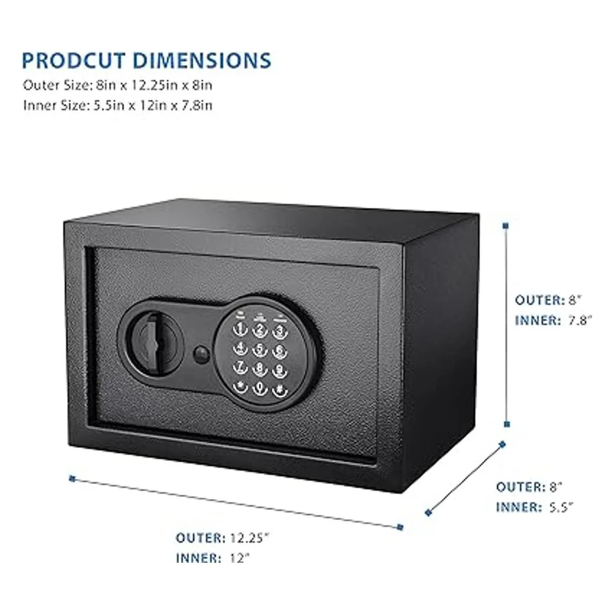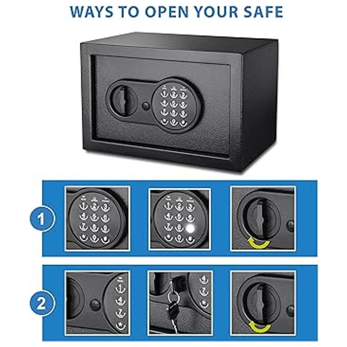 Uso versátil: la caja fuerte compacta para teclado digital tiene todo el espacio necesario para asegurar joyas, dinero, pasaportes, electrónica compacta, carteras y mucho más. La caja fuerte también se adapta prácticamente a cualquier lugar para una comodidad inigualable.