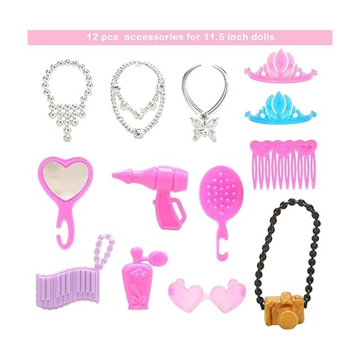 BARWA 43 unids accesorios de muñeca viaje artículos de tocador clip bolsa corona collar peine cámara banda de goma para 11.5 pulgadas muñeca regalo de Navidad