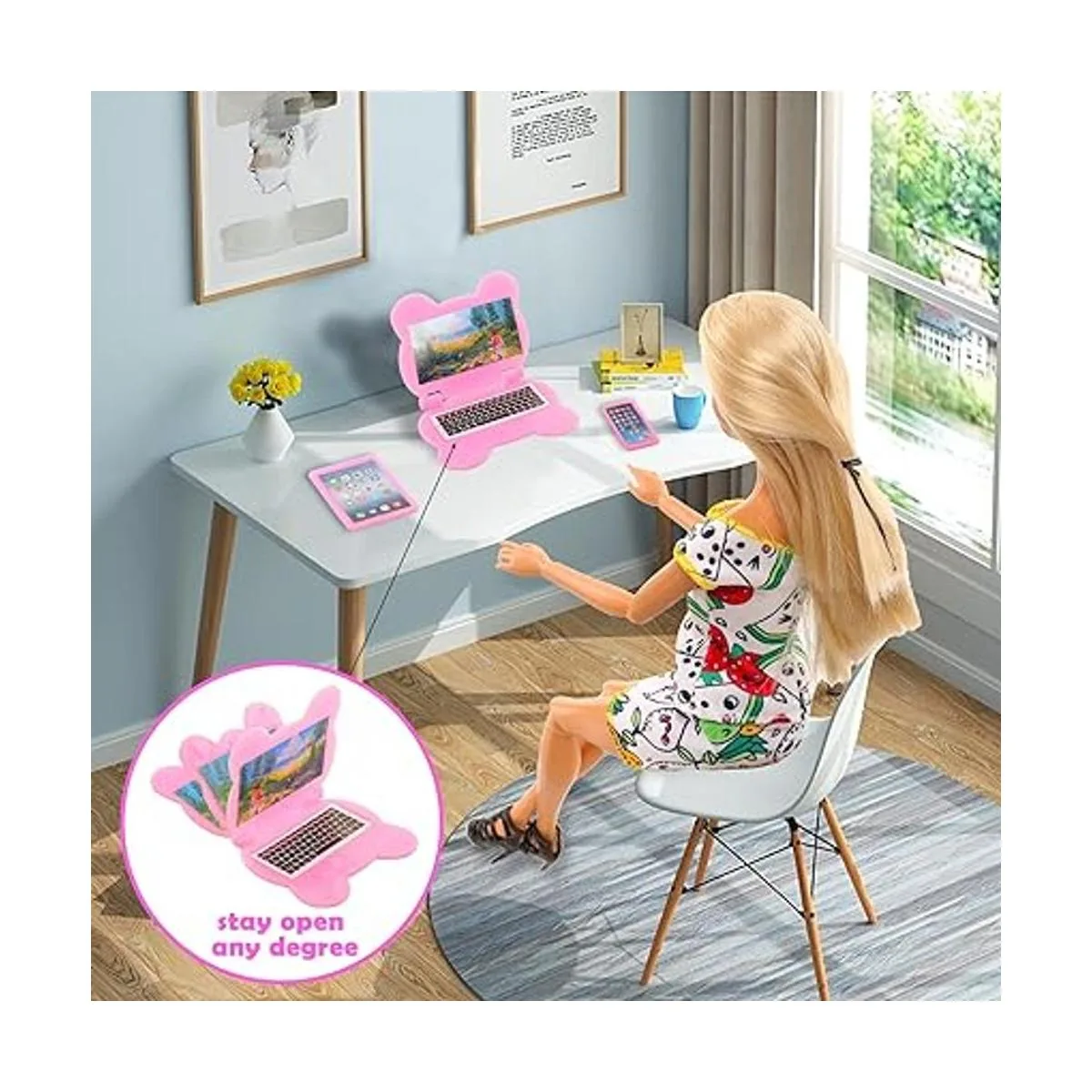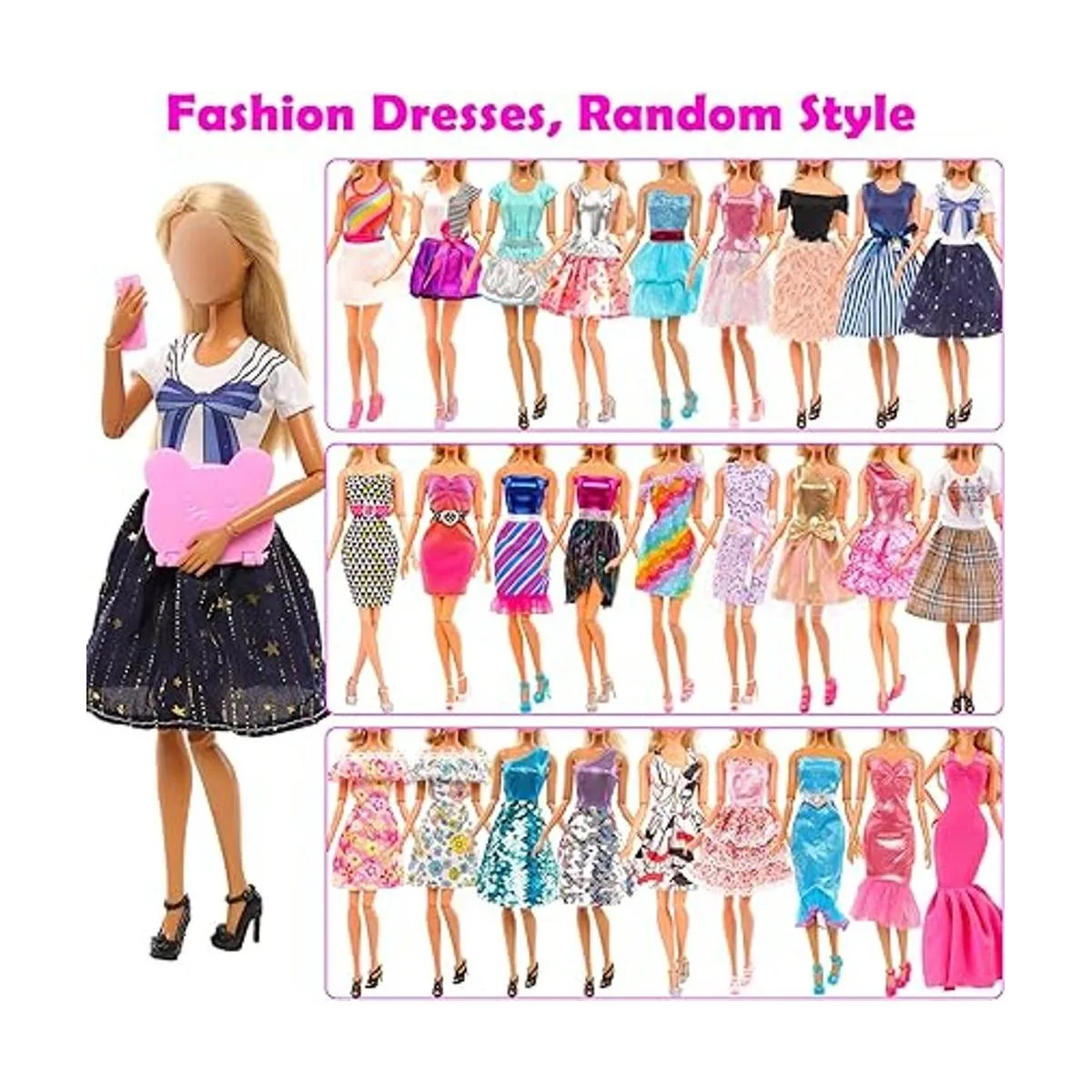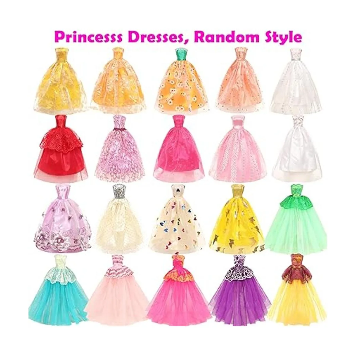 Para diferentes ocasiones: paquete de 20, 6 juegos de varios estilos y 10 ganchos, 15 zapatos tacones altos y zapatos planos, 3 almohadillas para computadora, teléfono, 9 cosméticos para la ropa de muñeca pueden mostrar a la muñeca diferentes temperamentos. Los niños pueden vestir muñecas de acuerdo a diferentes ocasiones