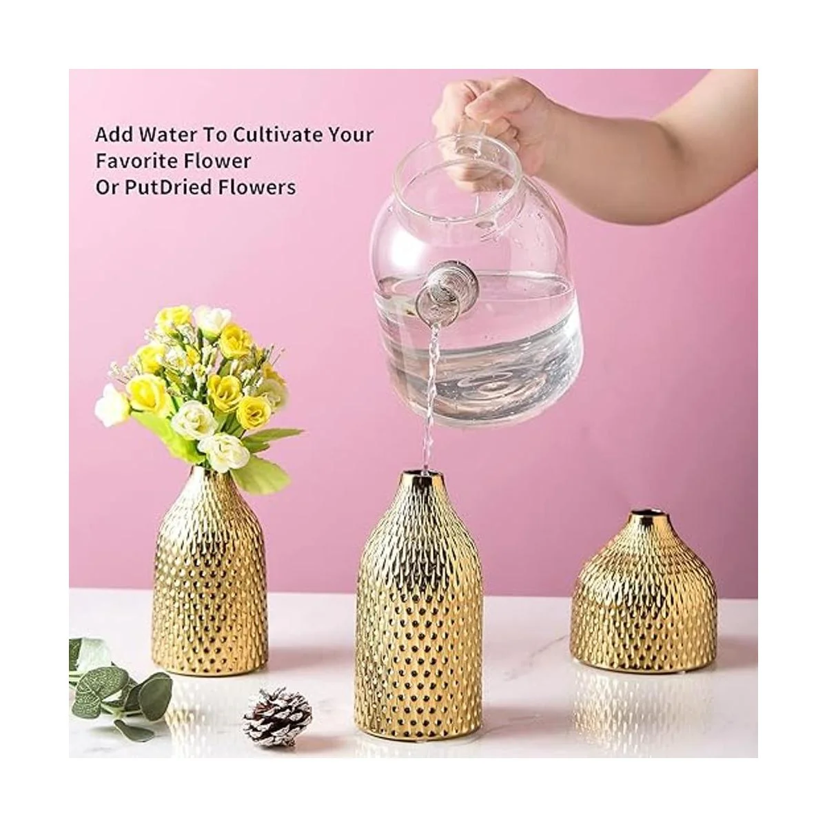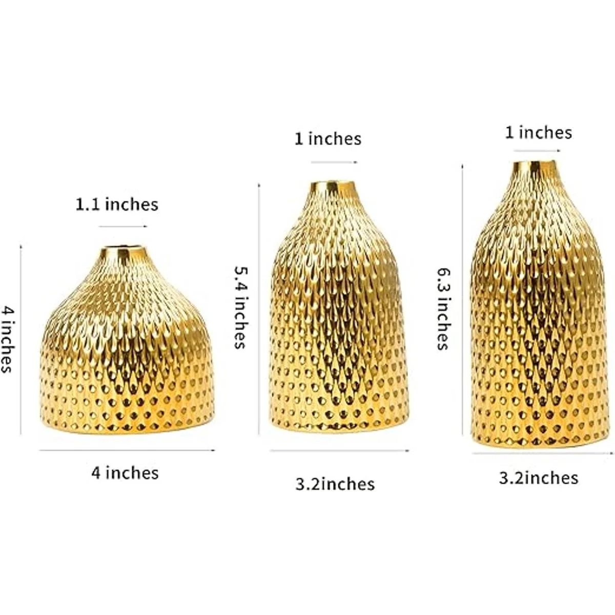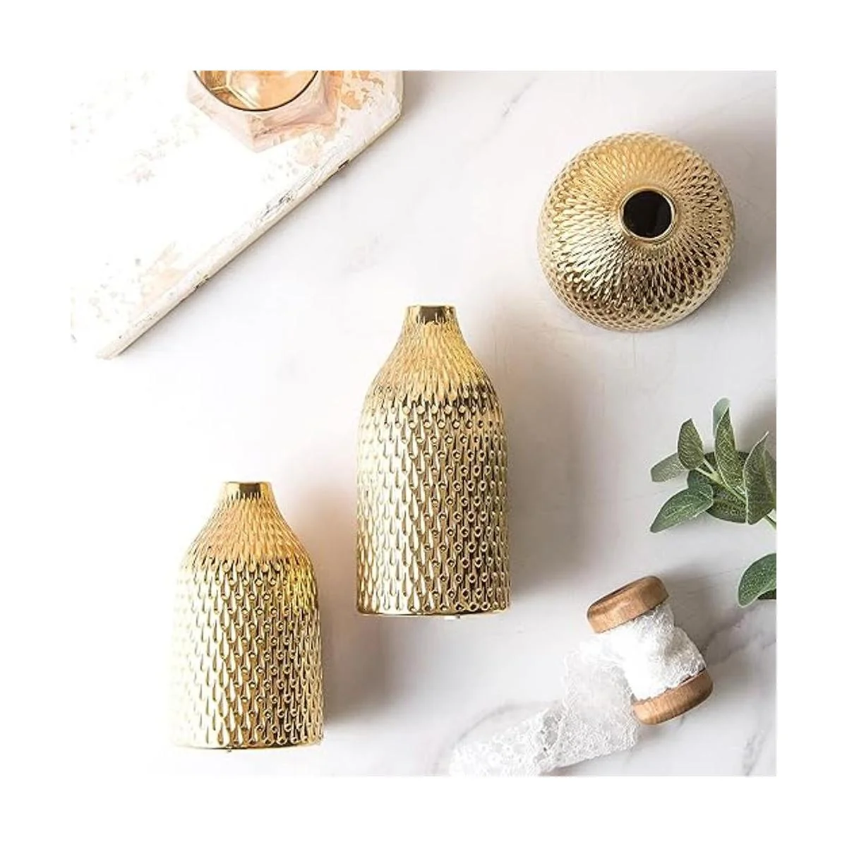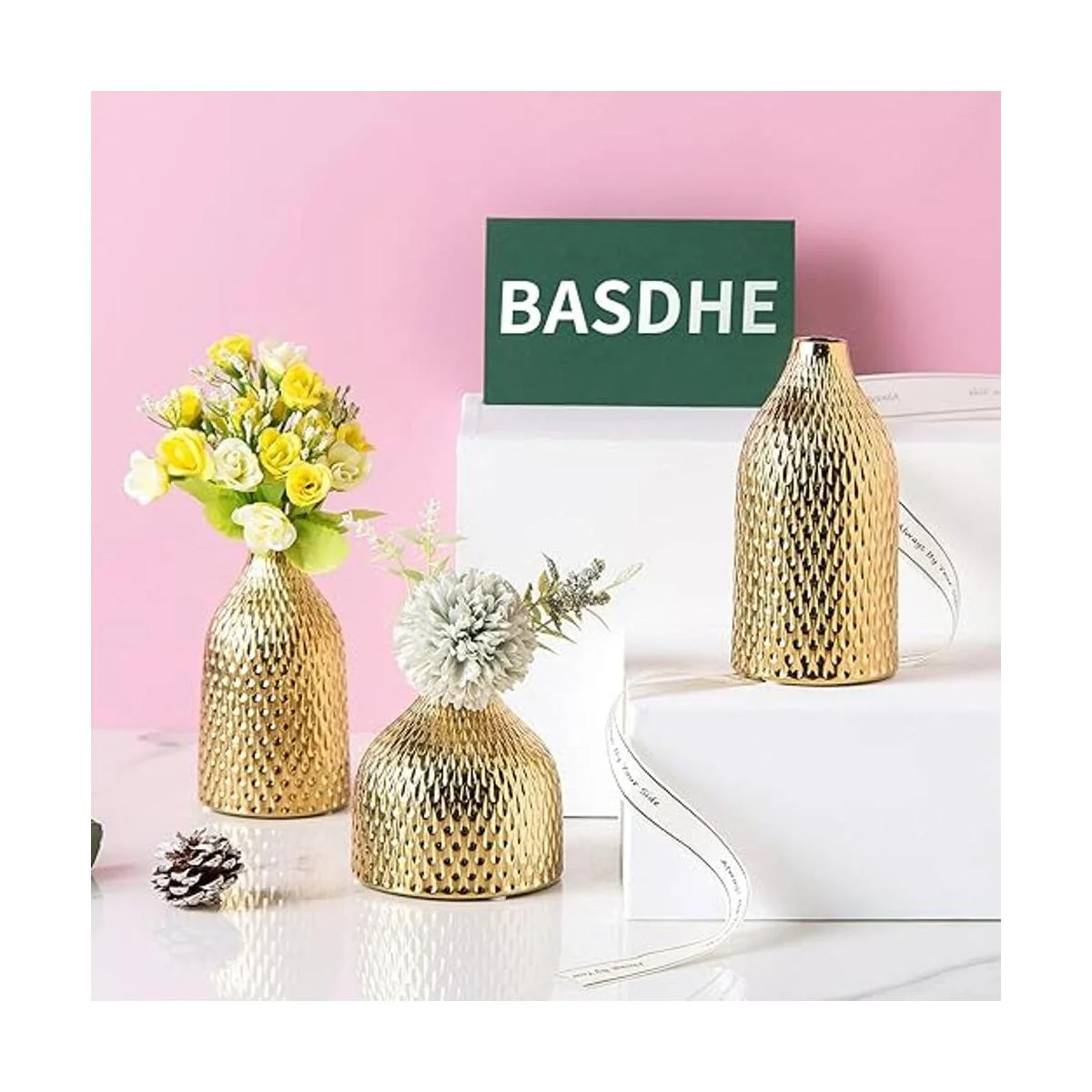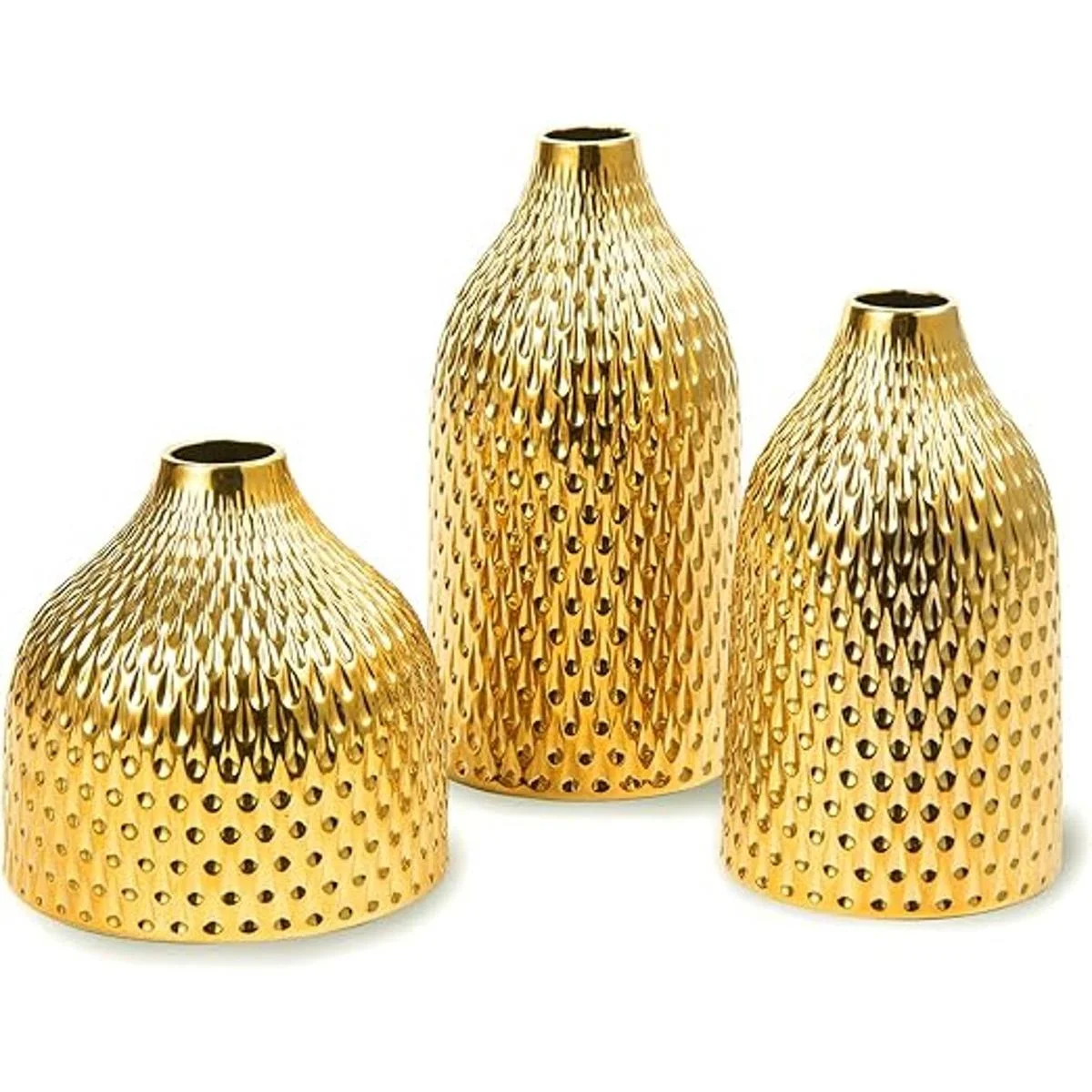 BASDHE Juego de jarrón de cerámica, 3 jarrones pequeños, decoración de lujo para el hogar, ideal para centros de mesa, decoración de mesa, estantería, manto, entrada, color dorado