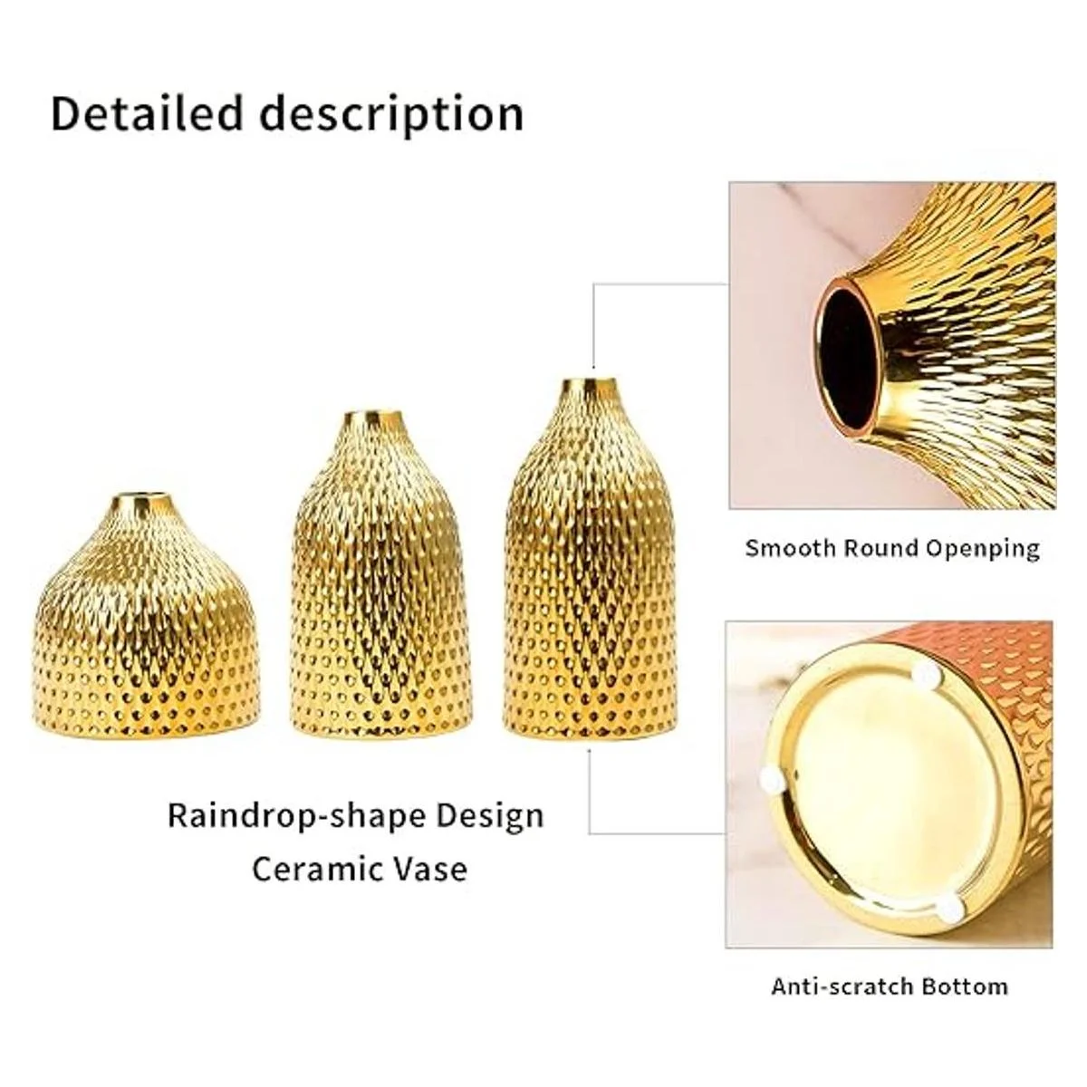 Diseño brillante: el diseño único de forma de gota de lluvia y el juego de jarrón de cerámica dorado crean una lujosa decoración interior.