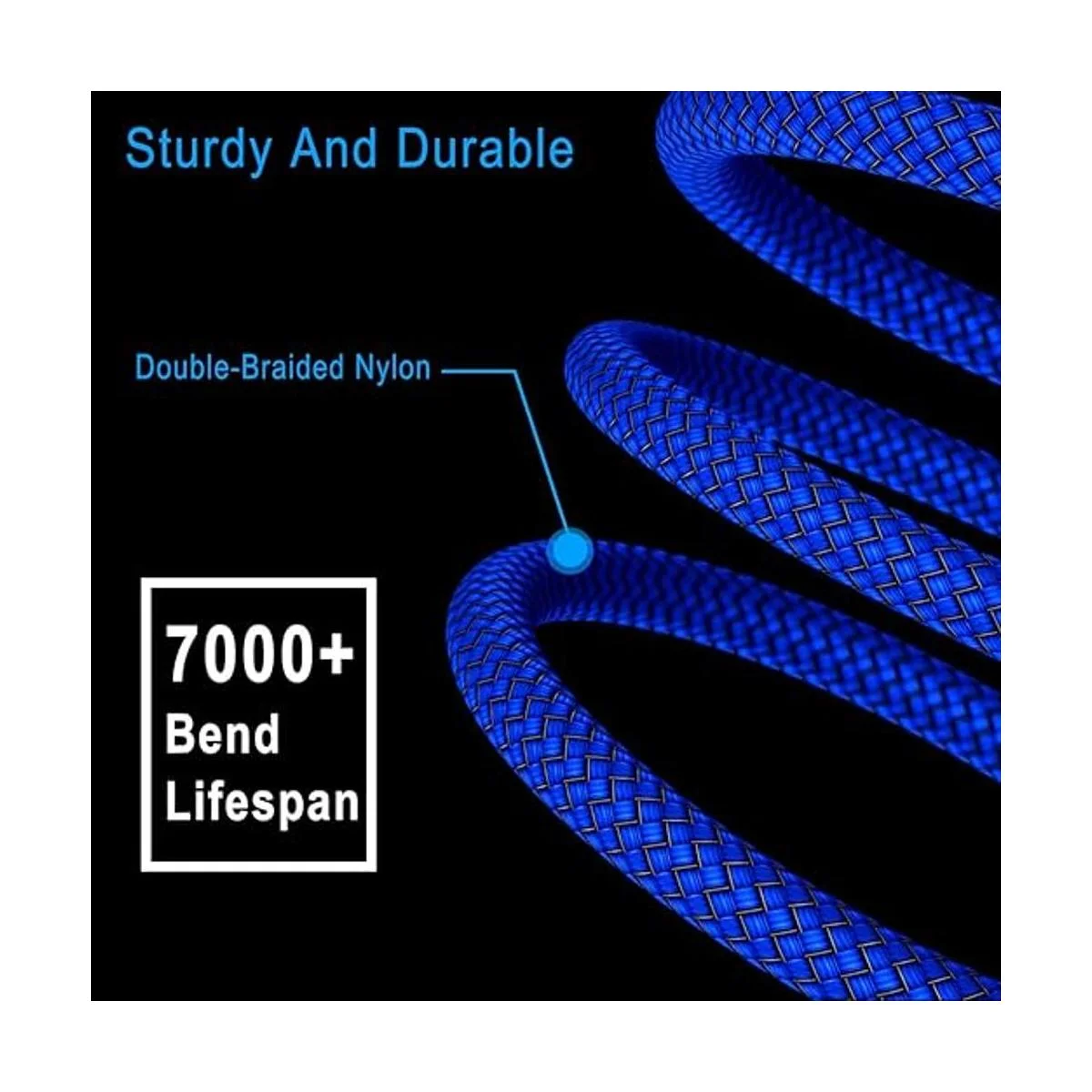 Extremadamente duradero: nuestro producto es un cable duradero y resistente en el que puedes confiar, con un exterior de doble trenzado y un núcleo de fibra de aramida de alta calidad. Cuenta con una vida útil probada de más de 7000 dobleces, lo que permite soportar el desgaste diario. Los conectores de aleación de aluminio también tienen cuellos reforzados para reducir el daño por flexión.
