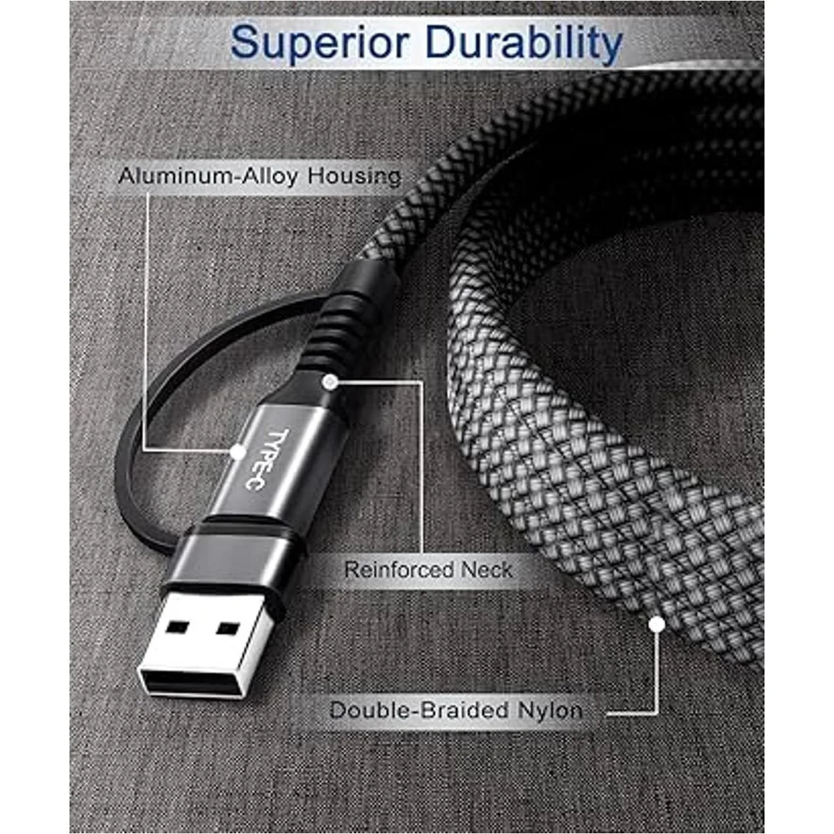 Extremadamente duradero: fabricado con un exterior de doble trenzado y conectores de aleación de aluminio, nuestro producto es un cable duradero y resistente en el que puedes confiar. Cuenta con una vida útil probada de más de 7000 dobleces, lo que permite soportar el desgaste diario.