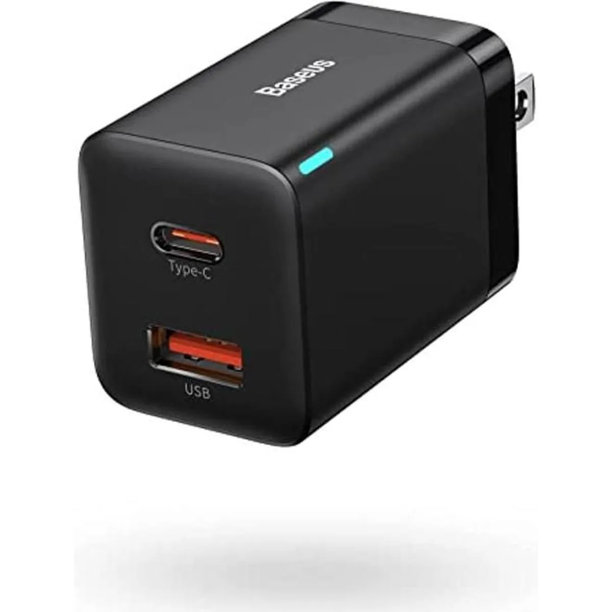 Contenido de la caja: Cargador de pared USBC de doble puerto Baseus de 30 W, guía de usuario idioma español no garantizado.