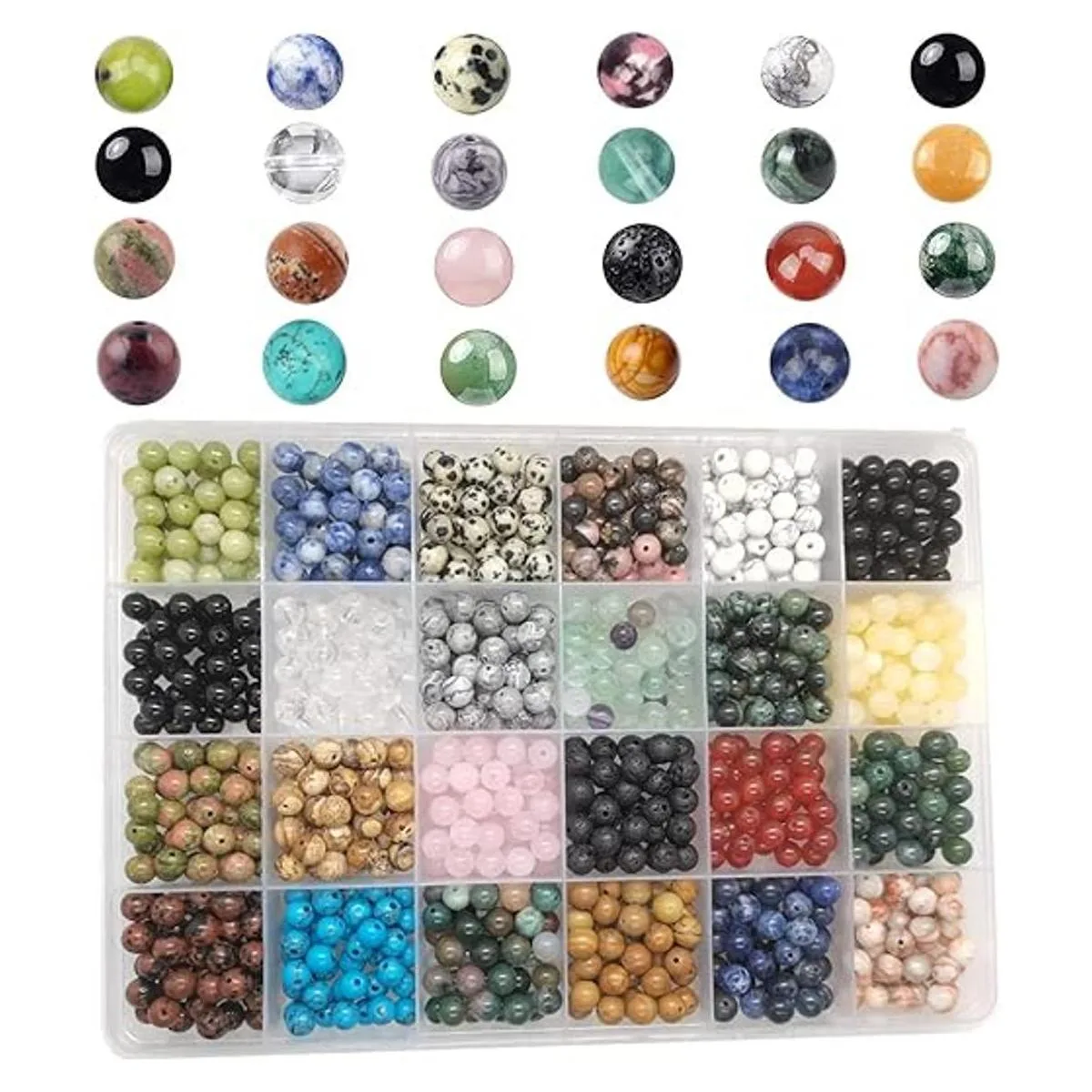 Cuentas de piedras preciosas naturales, seguras para tu salud y colorida para tu vida. Diámetro de las cuentas de piedra: 0.236 in; diámetro del agujero: 0.039 in, 960 piezas en una caja de plástico. Cada bola de piedra es del mismo tamaño promedio. Las cuentas de piedra son AAA de alta calidad, suaves, excelente pulido.