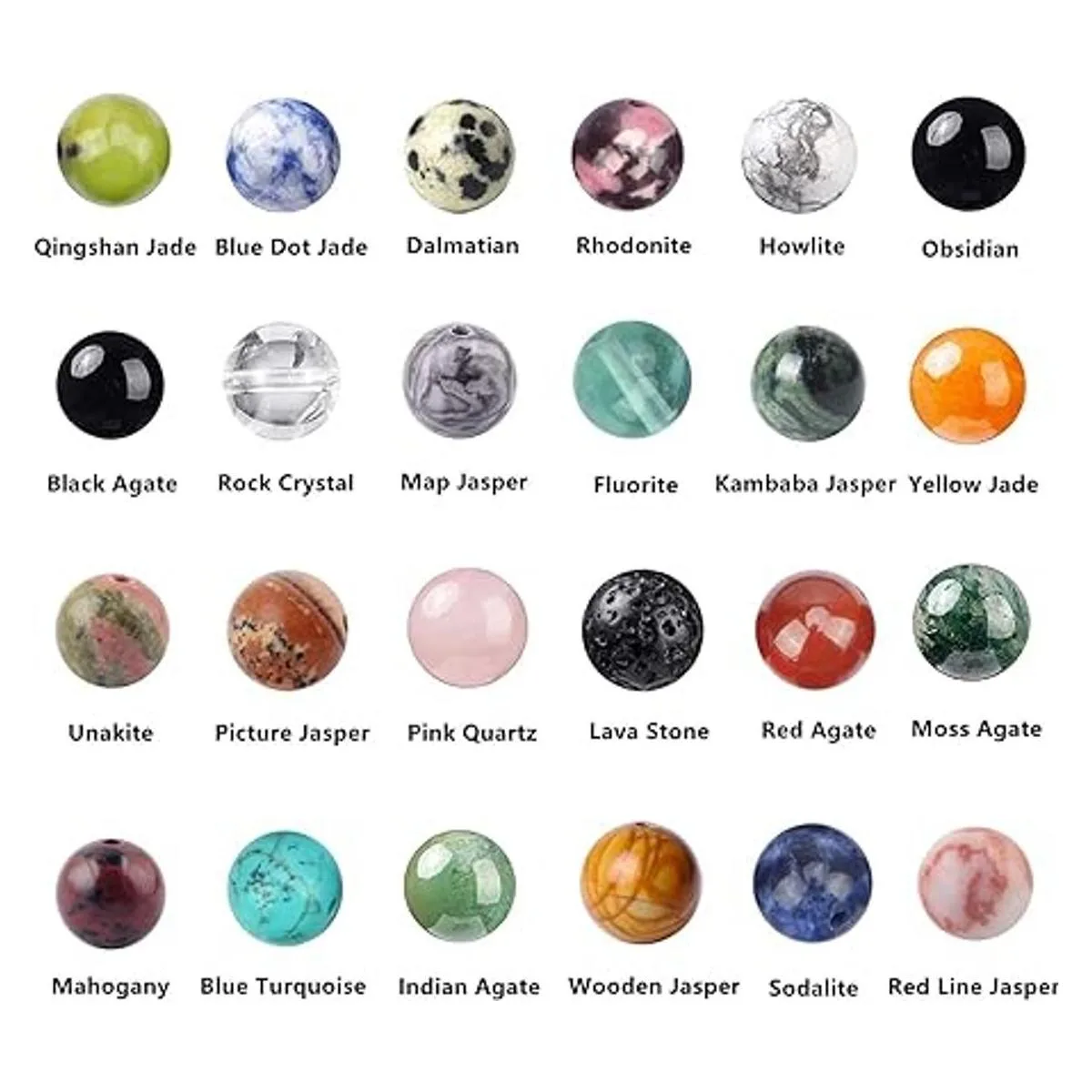 Basigeese 960 cuentas de piedra natural, cuentas pulidas, cuentas sueltas de 0.236 pulgadas, piedras preciosas de cristal, energía curativa para hacer joyas de bricolaje 0.236 pulgadas, 24 materiales A