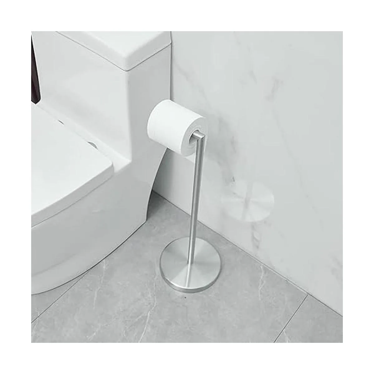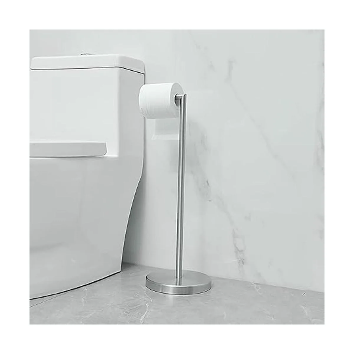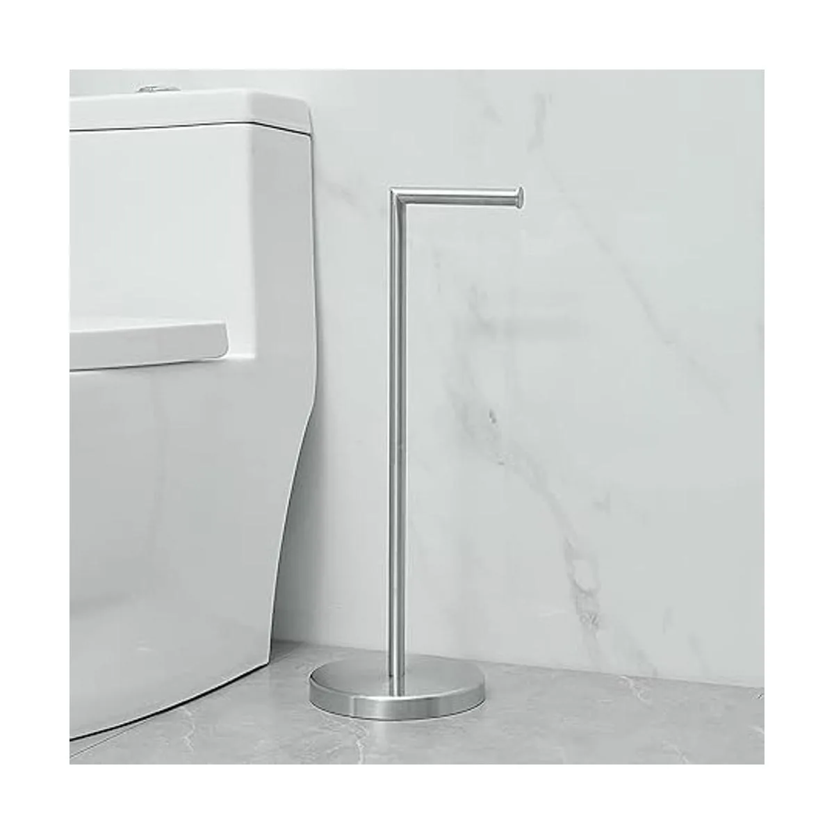 BATHLAVISH Free Standing Toilet Paper Holder Stand Bathroom Storage for 4 Rolls of Toilet Tissue Modern Stainless Steel Brushed Nickel Toilet Paper Stand