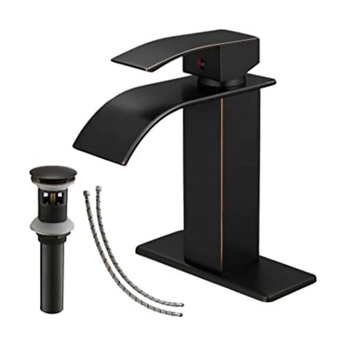 BATHLAVISH Grifo de baño de bronce aceitado, grifo de baño de cascada de bronce, grifo de baño de un solo agujero, tocador moderno con desage desplegable con desbordamiento