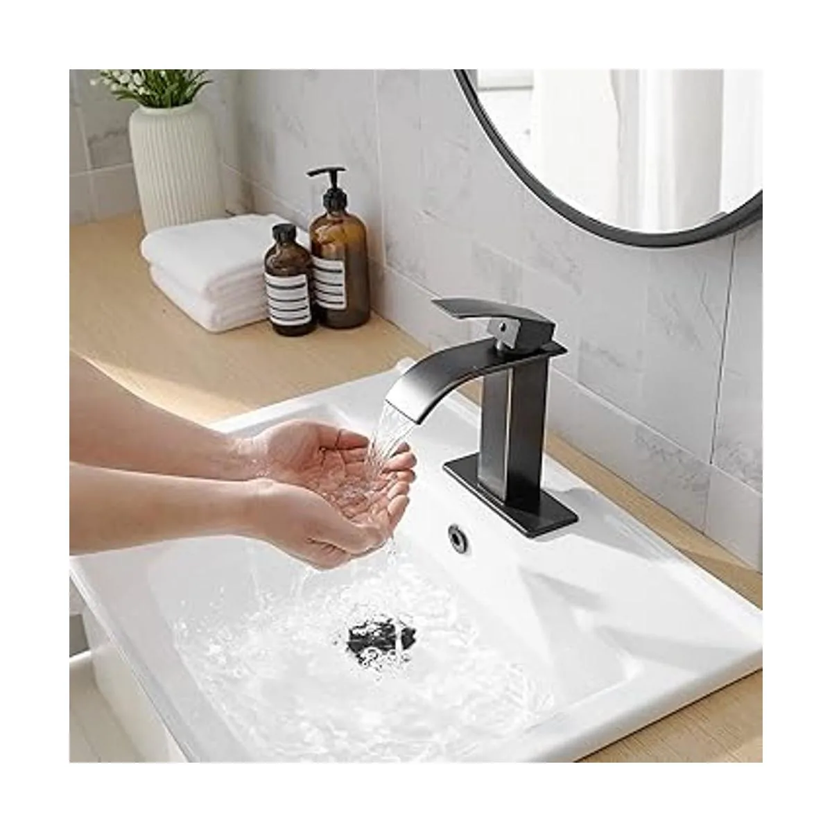 Diseño único de boquilla de cascada Adoptamos el diseño de salida de agua de cascada en pendiente para brindar una nueva experiencia a las familias que utilizan el lavabo, hacer que el baño sea diferente y satisfacer las necesidades de decoración del hogar. La forma simple y versátil es adecuada para diferentes estilos de baños. La corredera en la salida de agua también adopta un proceso de galvanoplastia, que es inoxidable y más duradero.