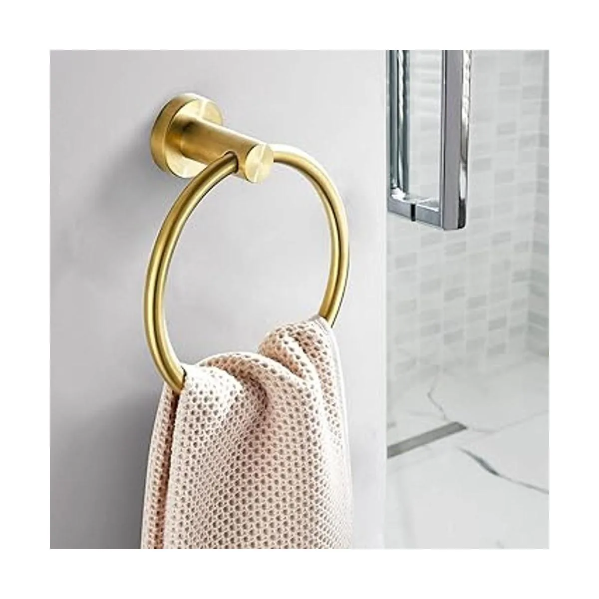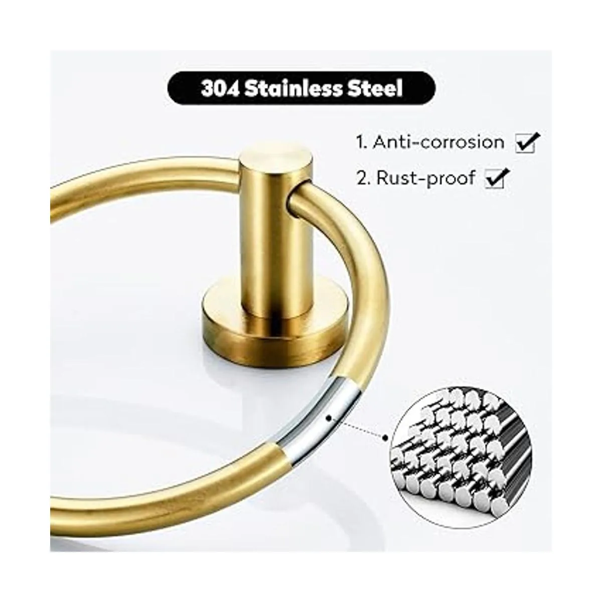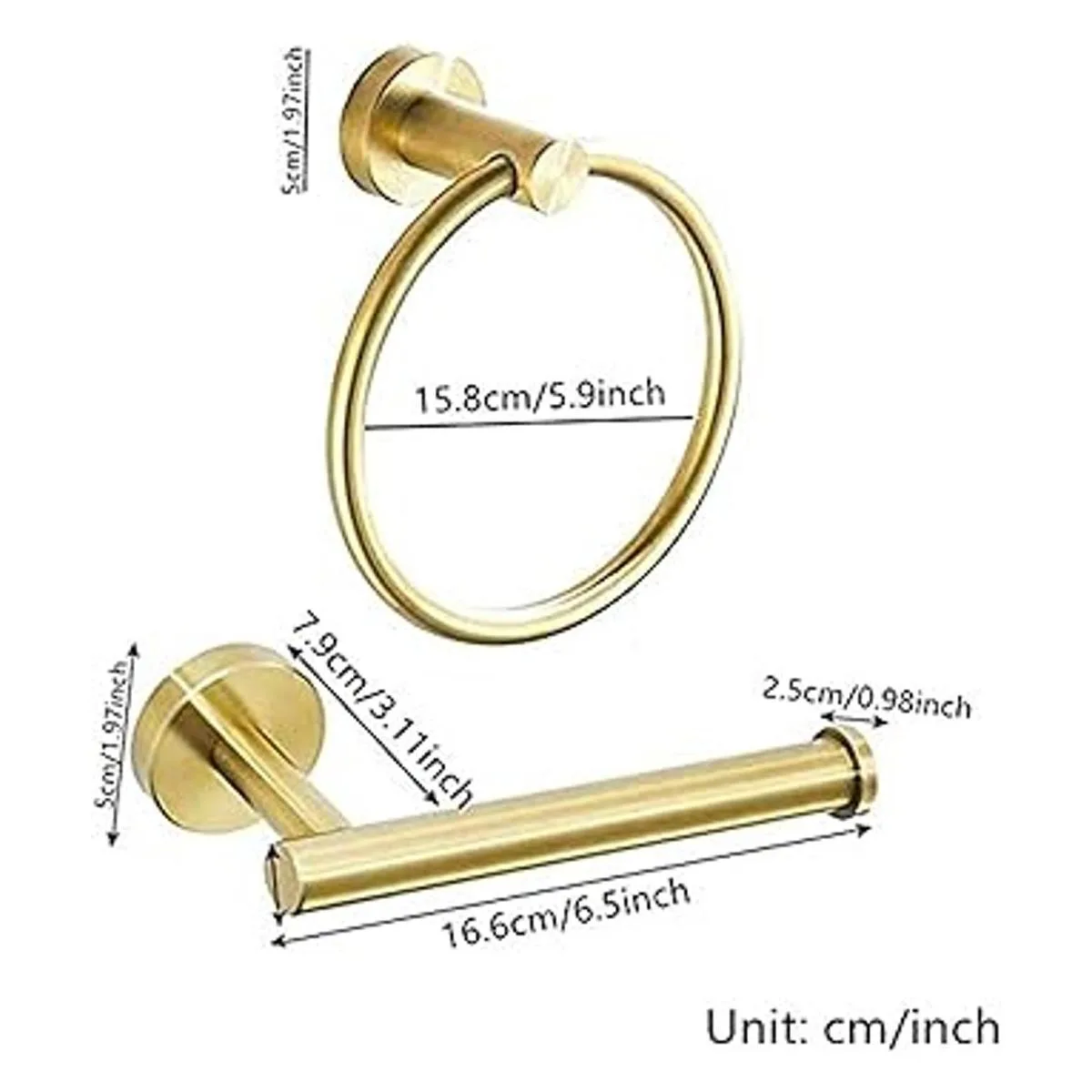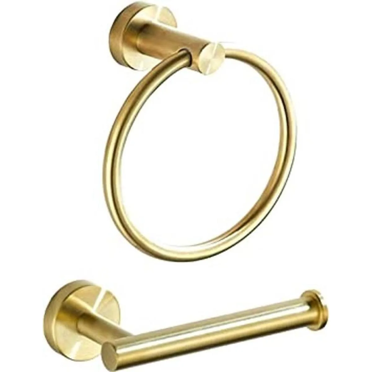 BATHSIR Toallero de baño, soporte para papel higiénico, accesorios dorados que incluyen soporte para toallas de mano, latón cepillado, dorado, 2 piezas, accesorios de baño de acero inoxidable para montaje en pared