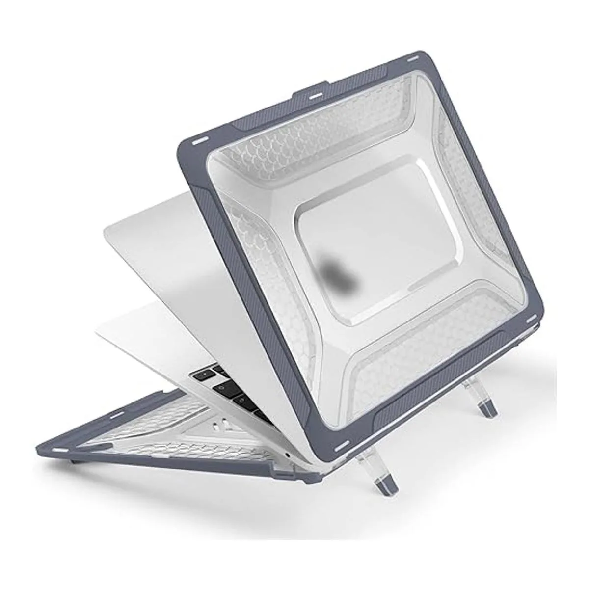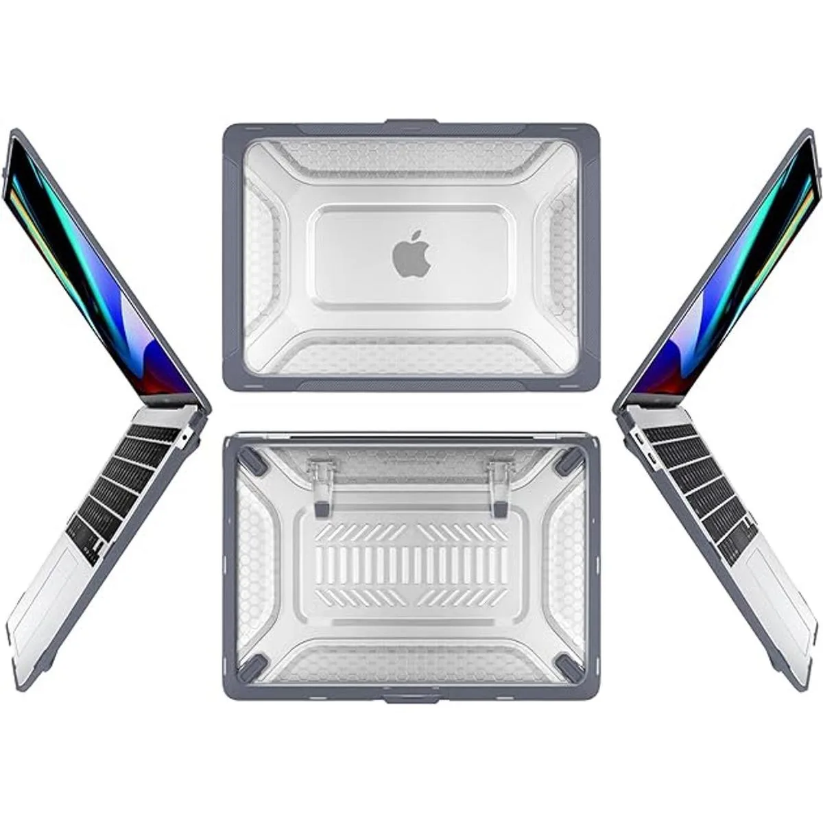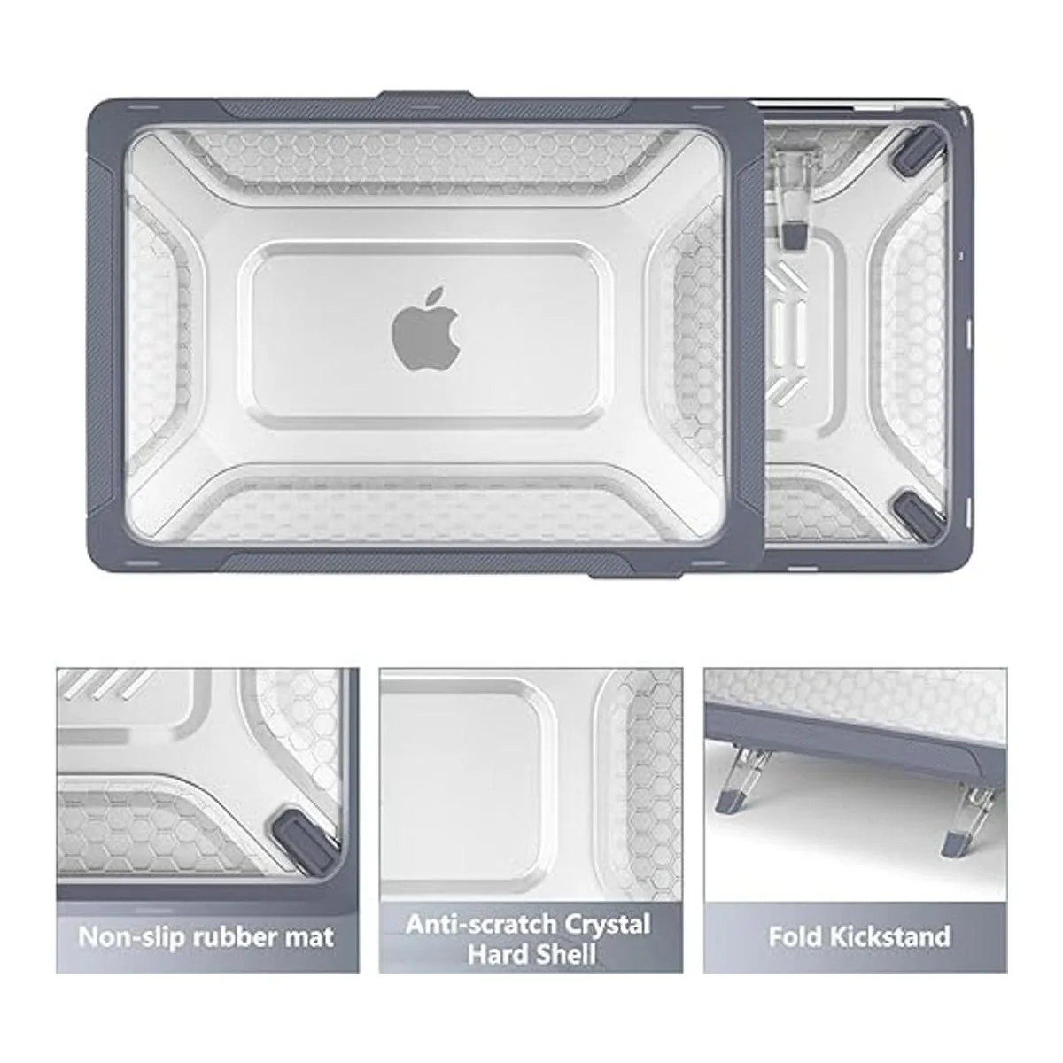 Batianda Funda protectora para MacBook Pro de 13 pulgadas 2022 M2 Chip 2021 2020 versión A2338 M1 A2289 A2251, carcasa rígida de panal resistente con parachoques de poliuretano termoplástico y soporte plegable y cubierta de teclado, gris