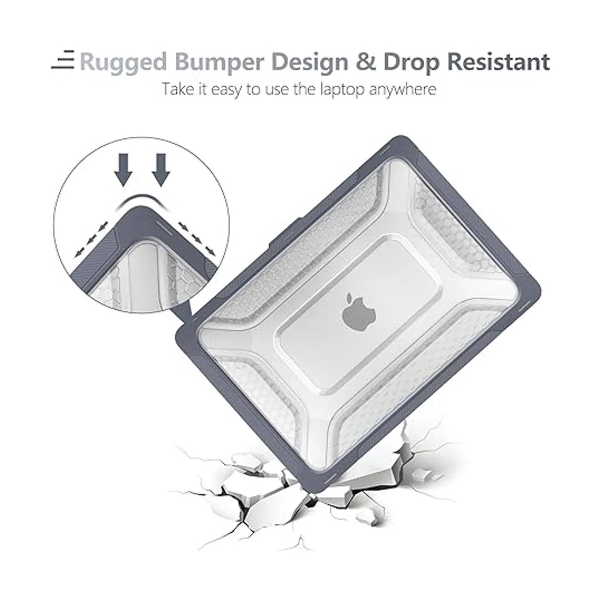 Diseño de bordes biselados que absorben los golpes, diseño de panal de abeja, carcasa rígida de TPU resistente, proporciona una protección completa para tu laptop contra rozaduras, caídas y arañazos accidentales
