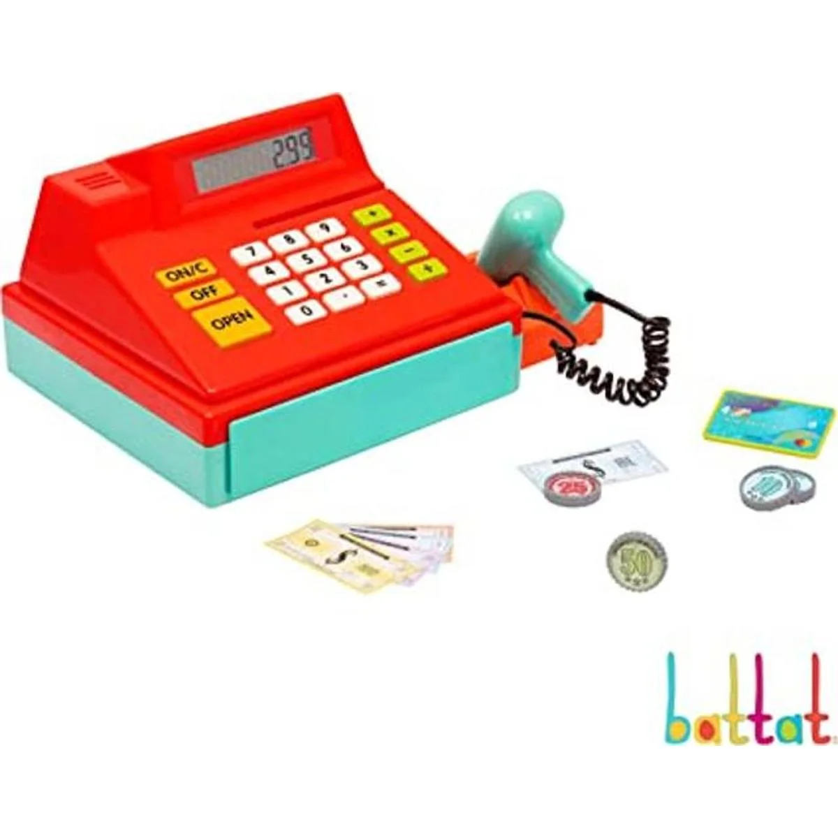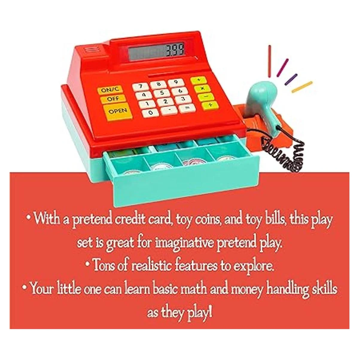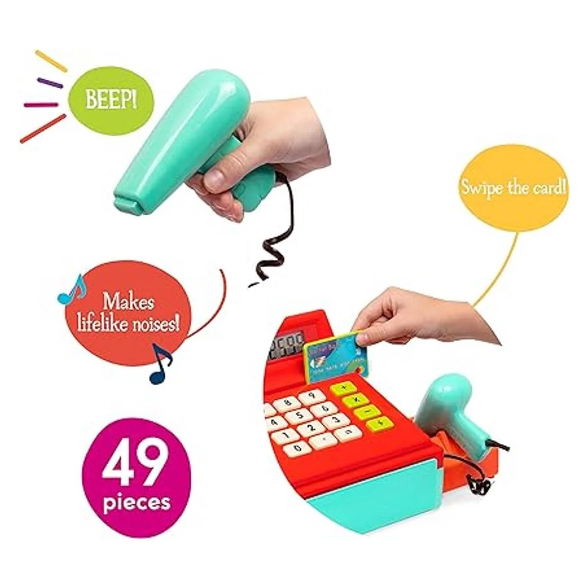 Battat Caja registradora de juguetes para niños, niños pequeños, caja registradora de juego de 49 piezas con dinero de juguete, tarjeta de crédito, escáner, cálculo de caja registradora, 3 años +