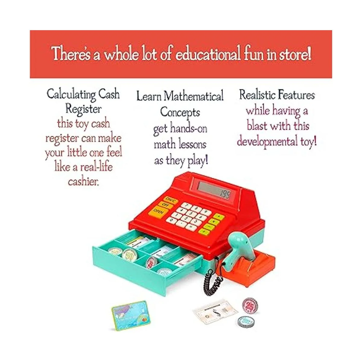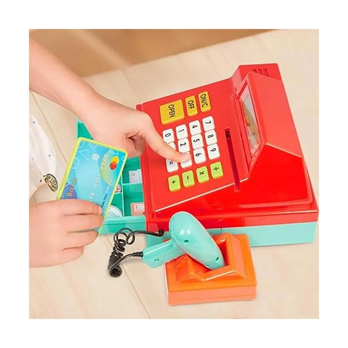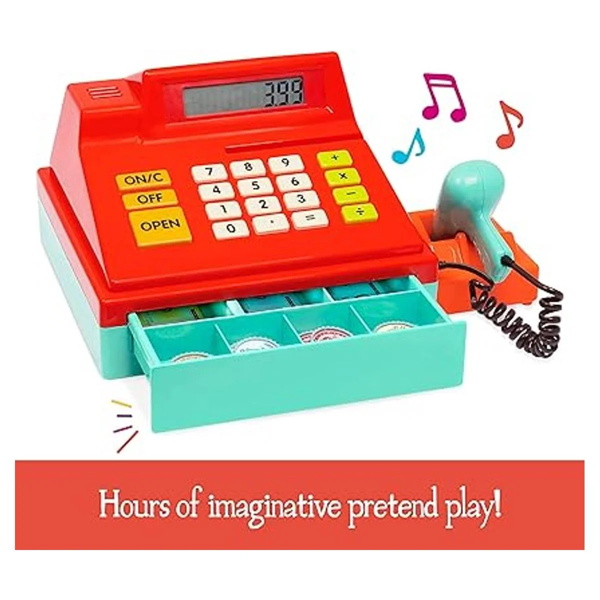 Battat Caja registradora de juguetes para niños, niños pequeños, caja registradora de juego de 49 piezas con dinero de juguete, tarjeta de crédito, escáner, cálculo de caja registradora, 3 años +