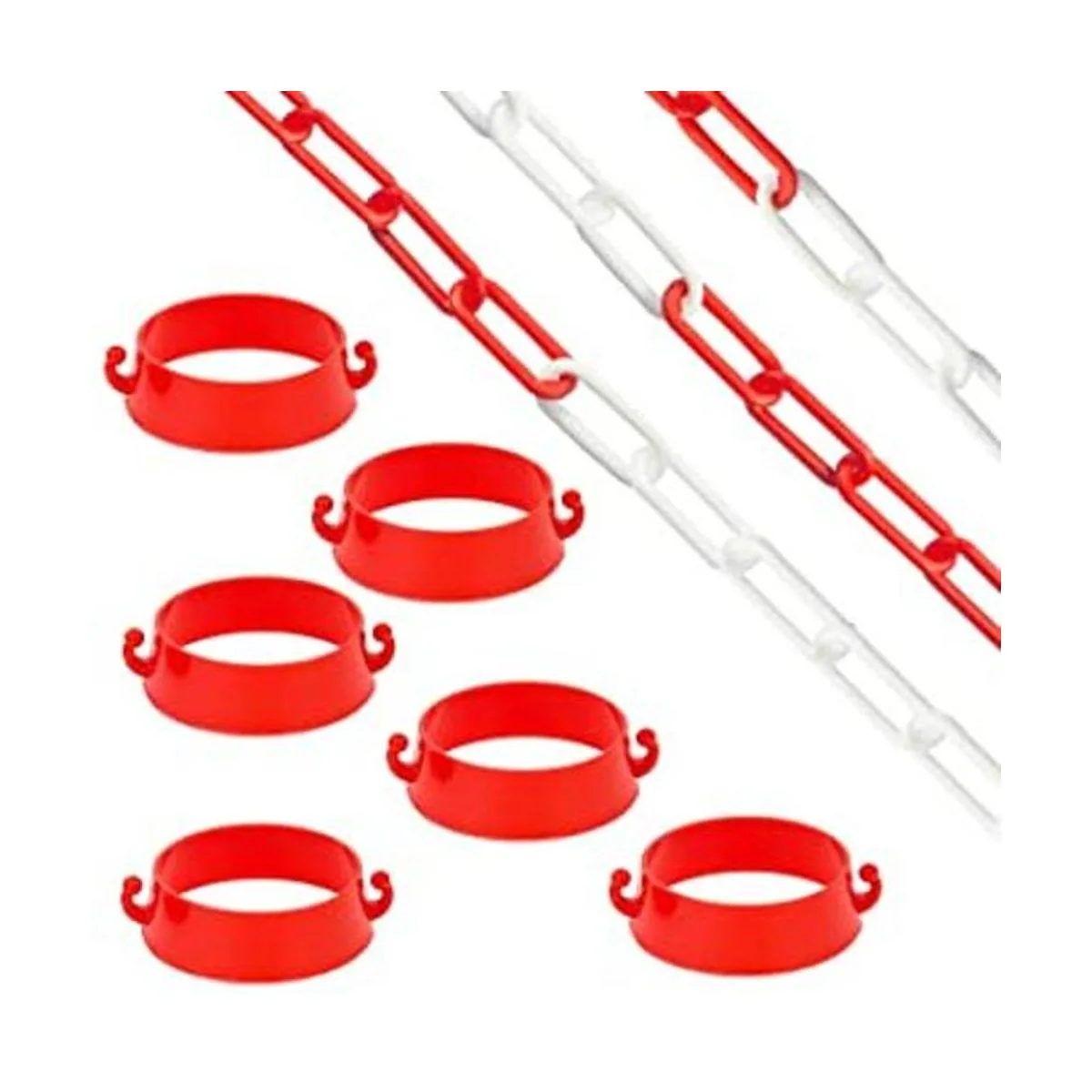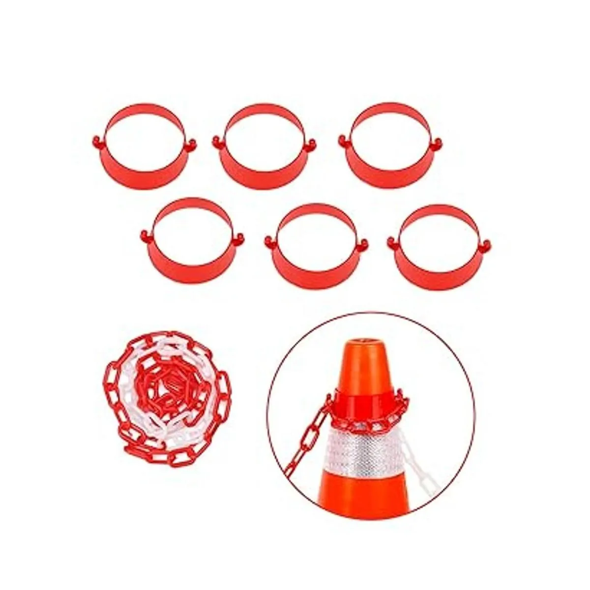 Battife 32 pies cadena de plástico y 6 kits de conectores para conos de tráfico barrera o postes de tráfico para construcciones Home Road calzada estacionamiento uso