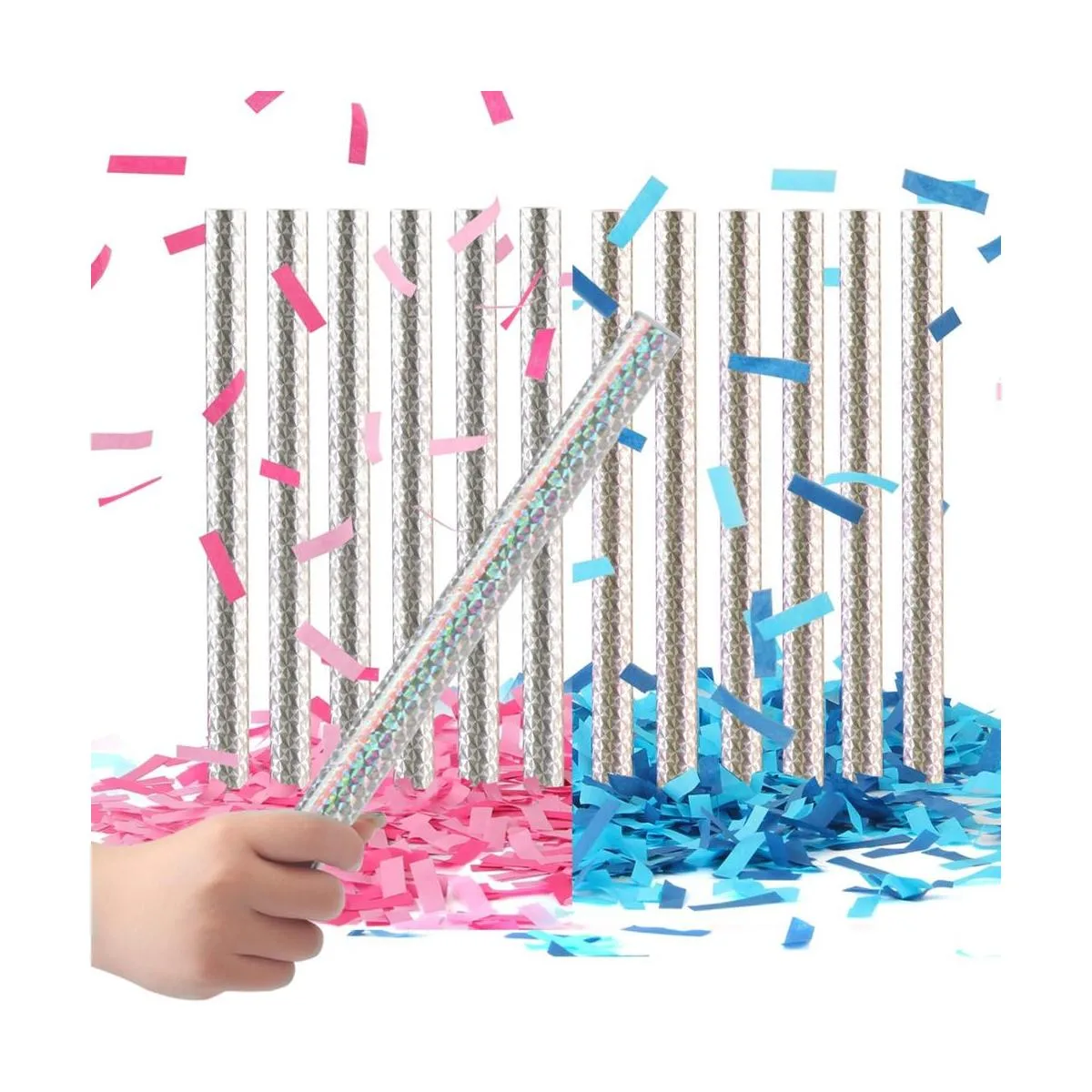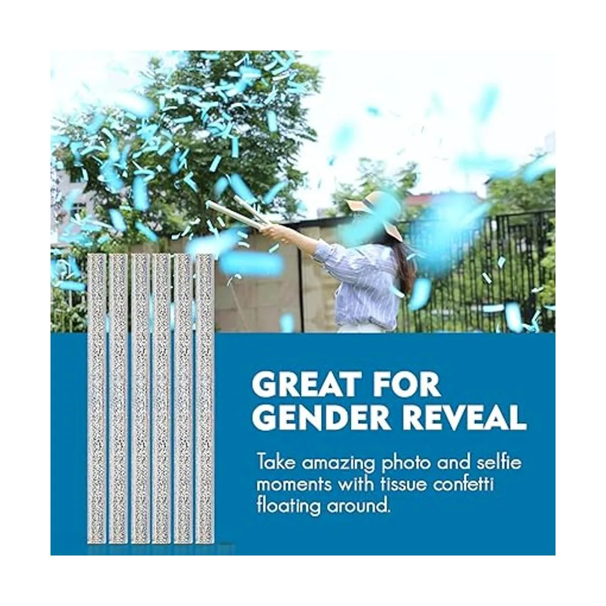 Battife 6 palitos de confeti de revelación de género rosa 6 azules, varillas de confeti de papel de seda para baby shower, fiesta de niña de niño, 14 pulgadas