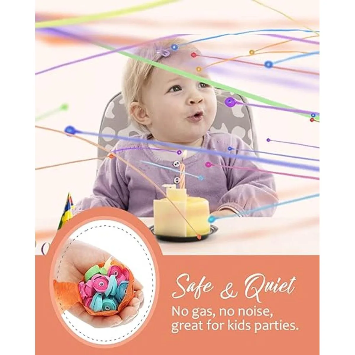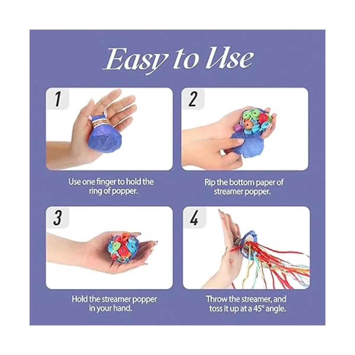 Fácil de usar: en primer lugar, utiliza un dedo para sostener el anillo de popper, luego rasga el papel en la parte inferior de las serpentinas, luego sujeta las serpentinas en tu mano, tira como un truco mágico cuando la fiesta esté en marcha. Es ideal para decoración de fiestas, mucho más seguro que el cañón de confeti o los botones de confeti, fácil de sacar, sin ensuciar y fácil de limpiar después de la fiesta.