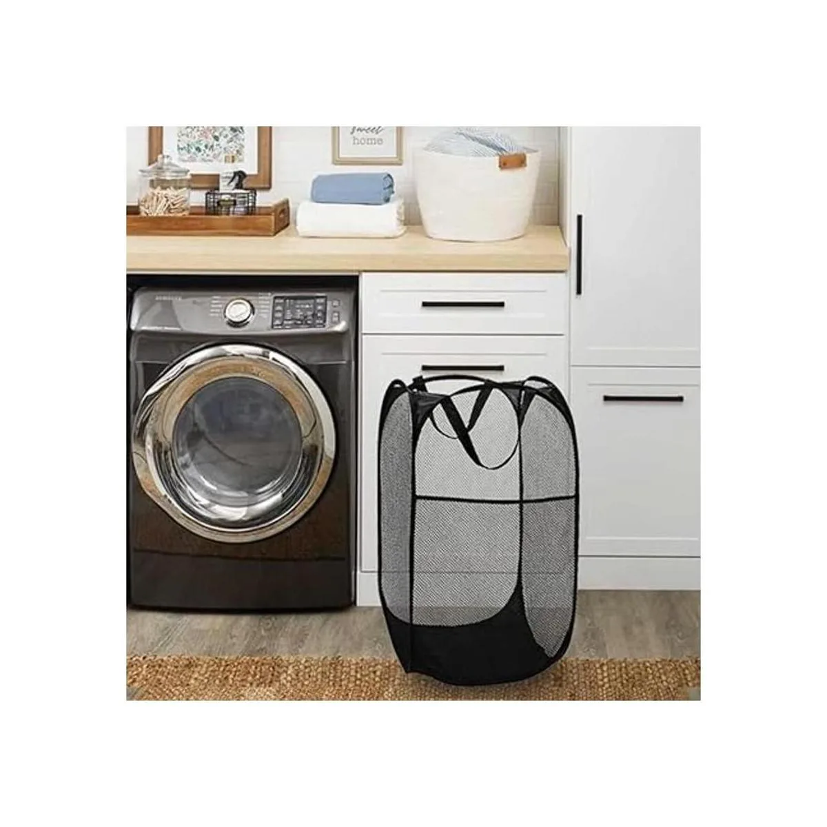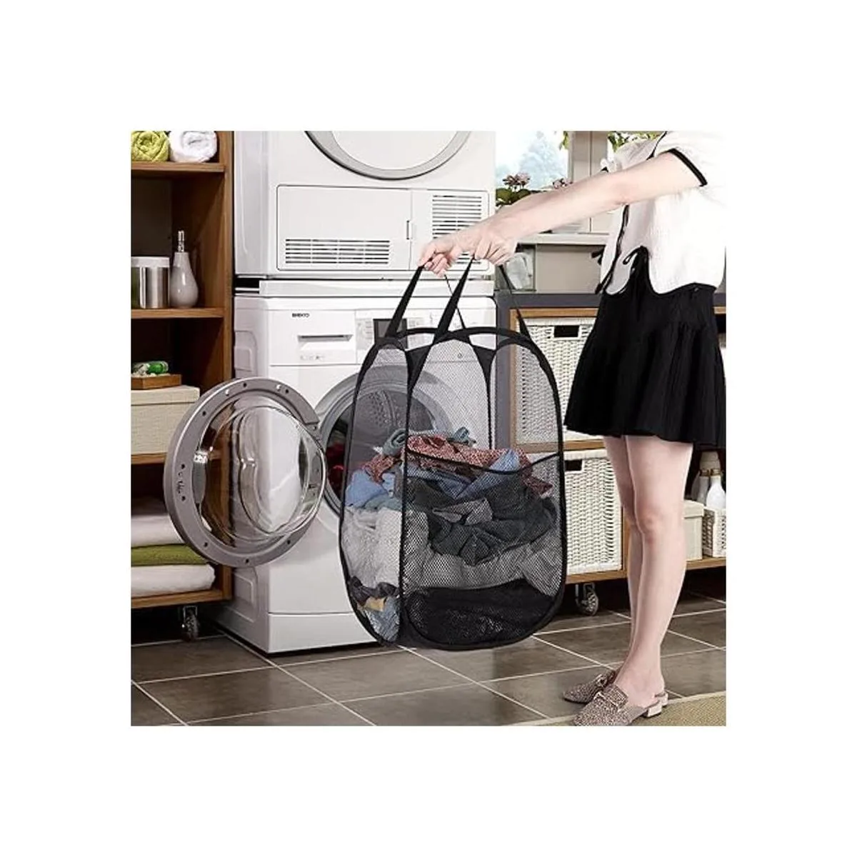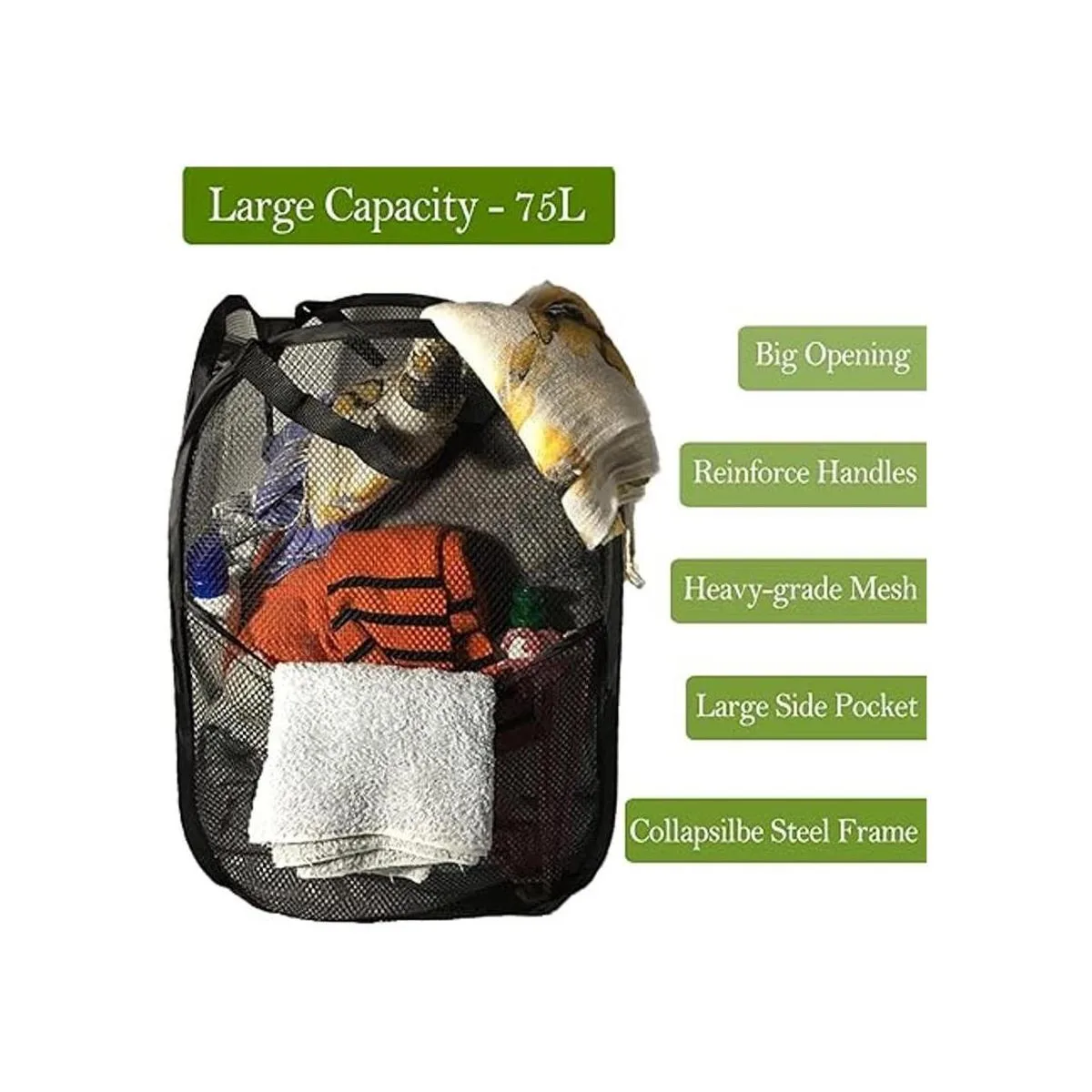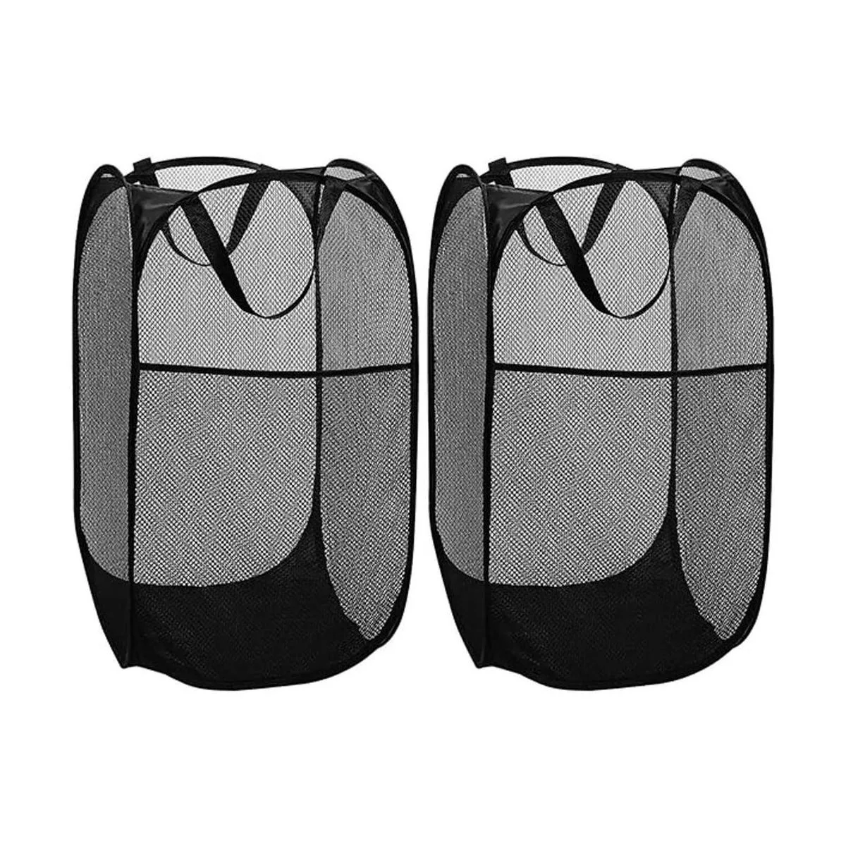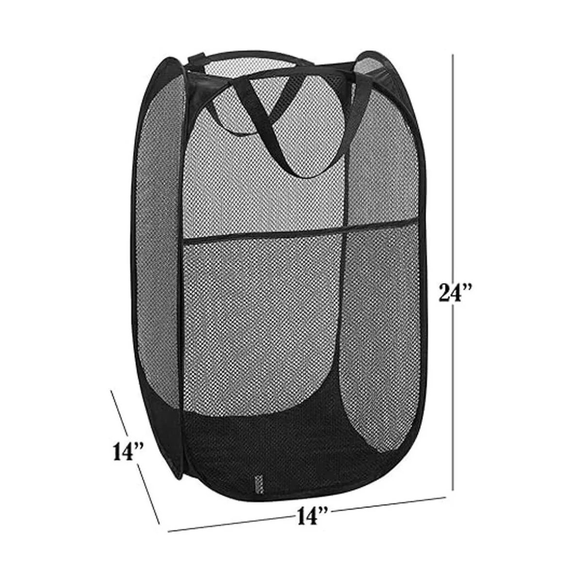 BATTOO Canasta plegable de malla fuerte de lujo con bolsillo lateral para lavandería, baño, habitación de los niños, dormitorio universitario o viajes, color negro negro