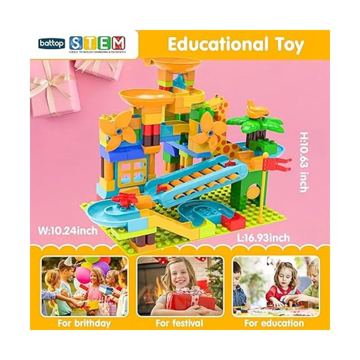 3. Seguro y duradero: el juego Marble Runs juguete de construcción está hecho de material ABS de alta calidad. Ha pasado el certificado de seguridad US ASTM 963, absolutamente no tóxico. Hacen que sea seguro para que el niño lo haga por él mismo con una suave sensación al tacto.