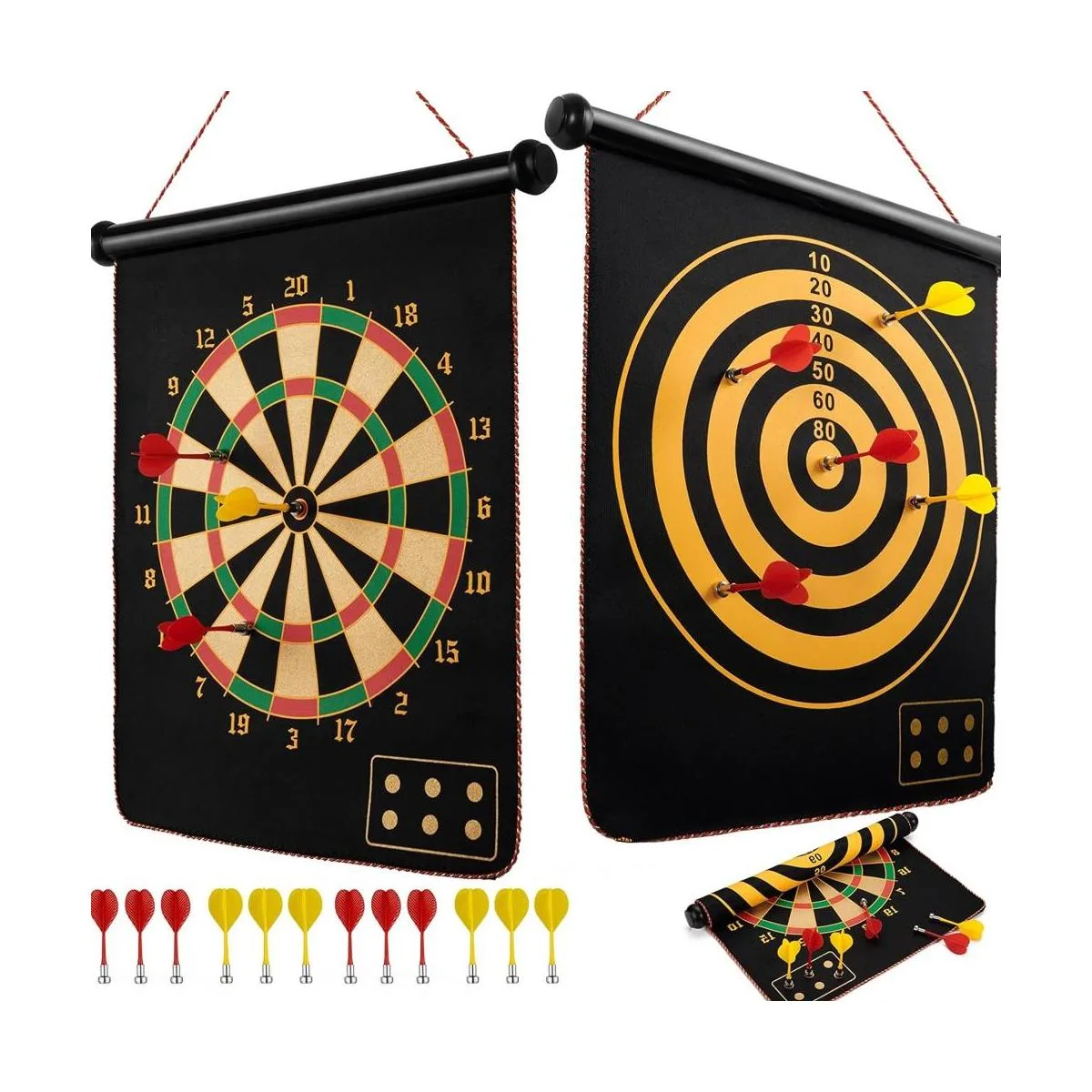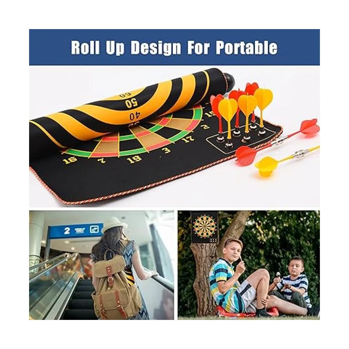 Portátil en todas partes: la tabla de dardos de doble cara para niños ofrece un práctico diseño enrollable para colgar el tablero de dardos cuando juegas y enrolla los juguetes de los niños cuando no estén en uso.