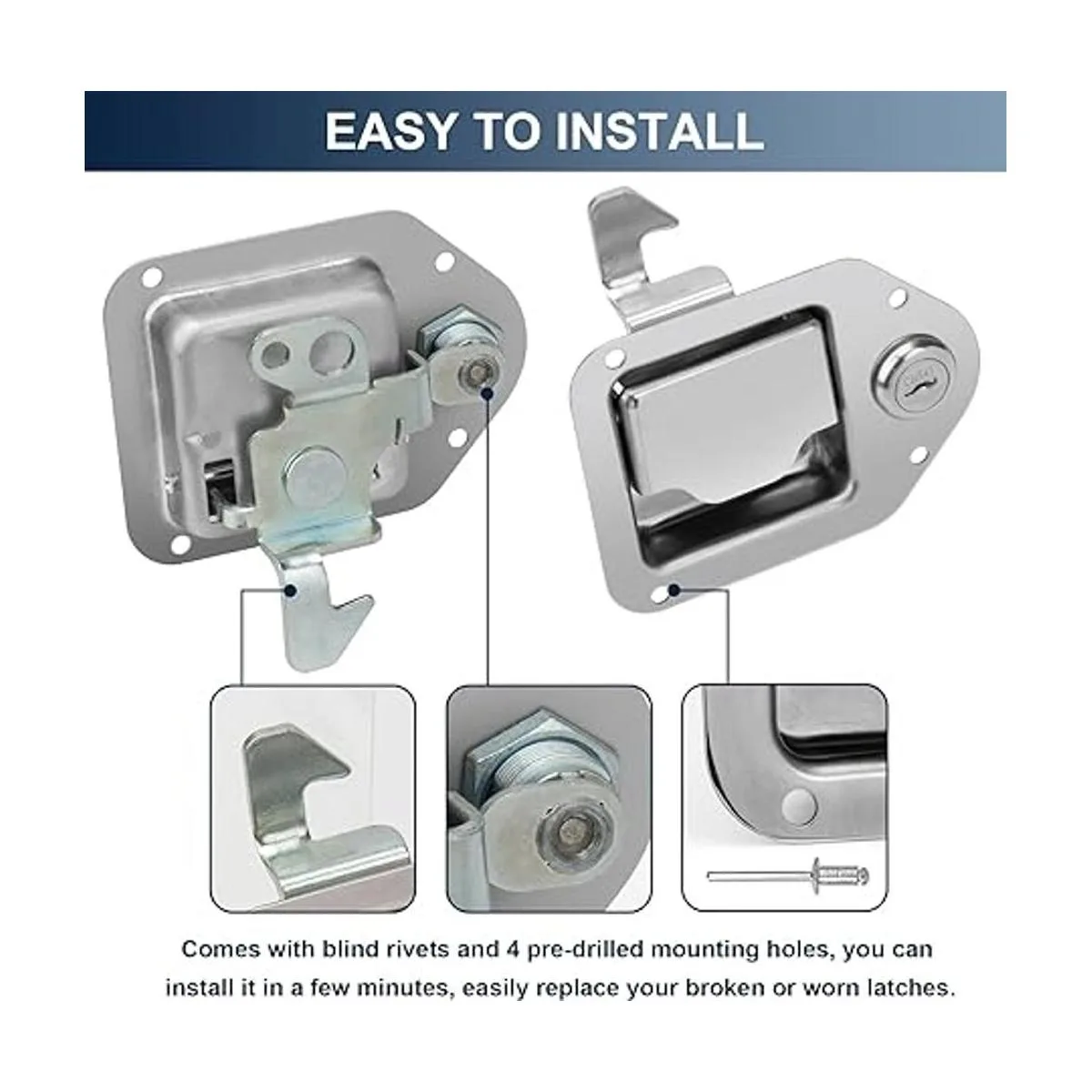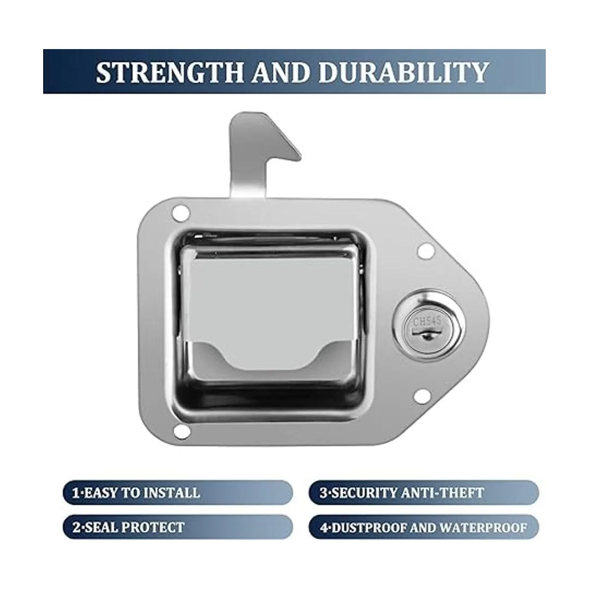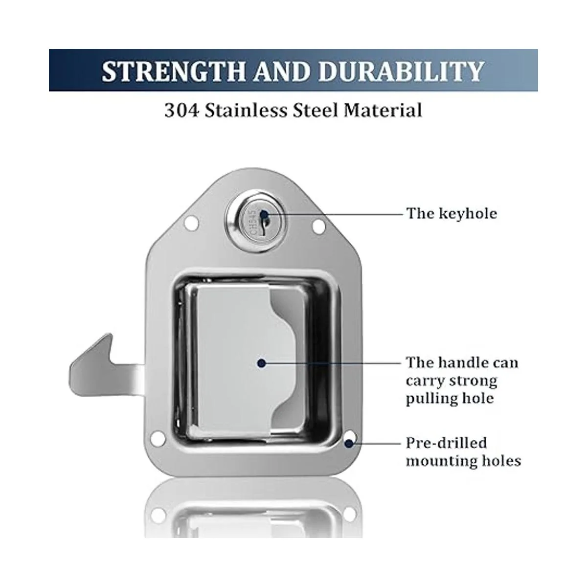 Resistencia y durabilidad: cerradura de caja de herramientas para camión fabricada con materiales de grado industrial de la más alta calidad, acero inoxidable 304 resistente al óxido con un acabado pulido, hecha para manejar las condiciones más duras.