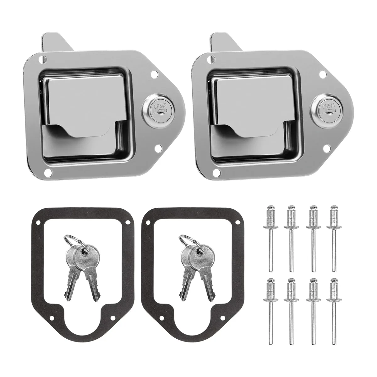 El paquete contiene: 2 cierres de paleta de acero inoxidable, 2 juntas, 4 llaves a juego, 8 remaches ciegos.