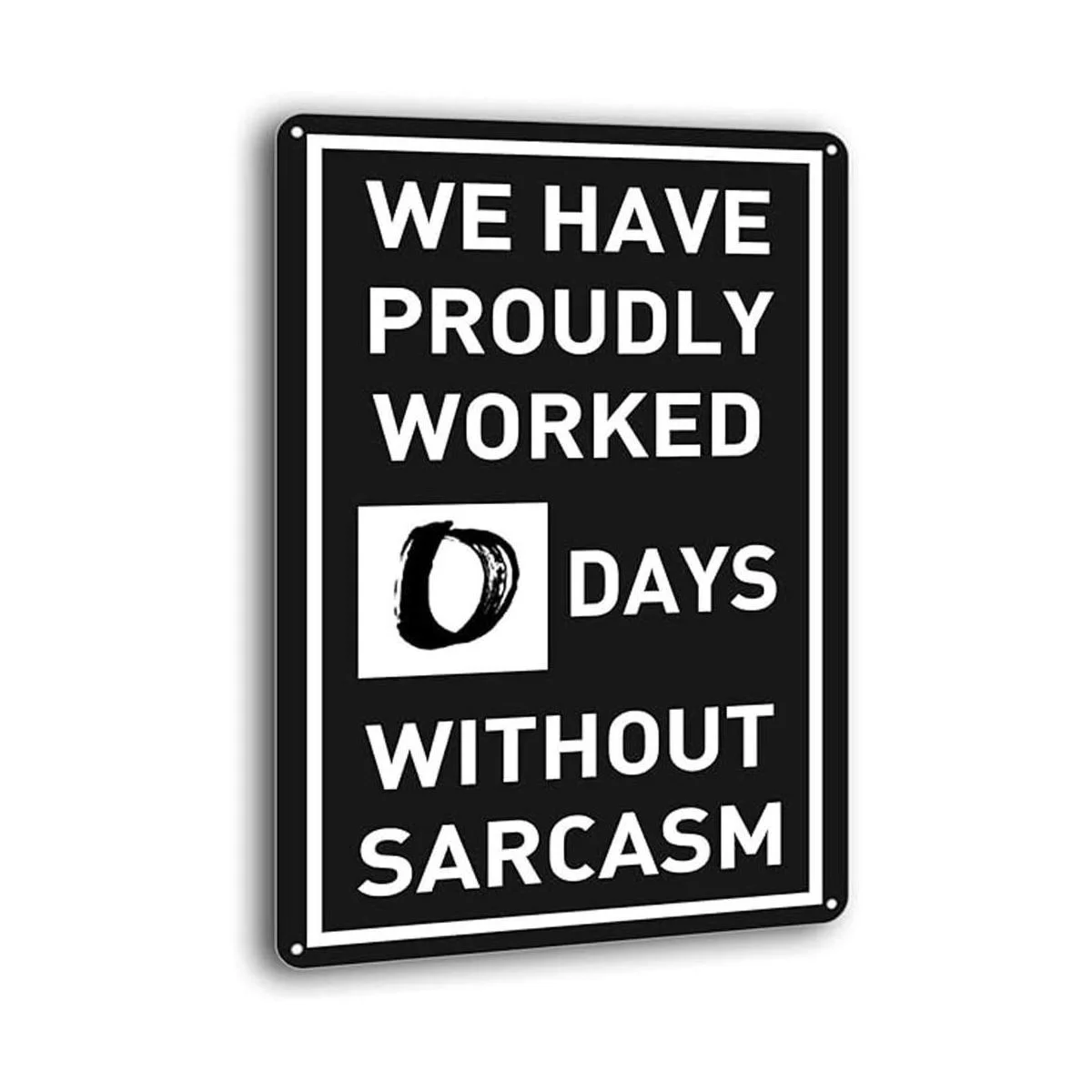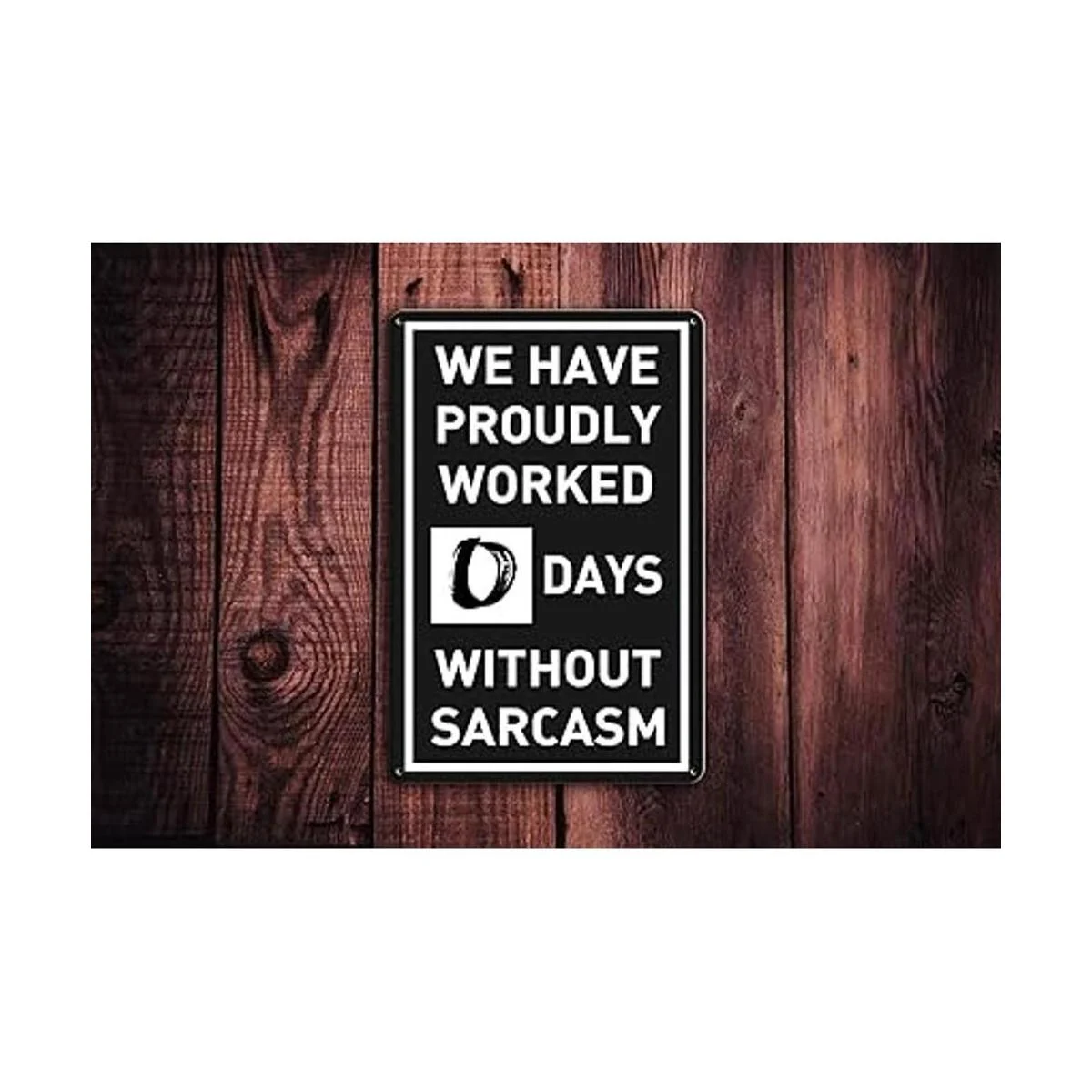 BAYABU letreros de metal de estaño 0 días sin sarcasmo decorativo para pared cartel de decoración del hogar para pub jardín interior cerveza 8.0 x 12.0 in