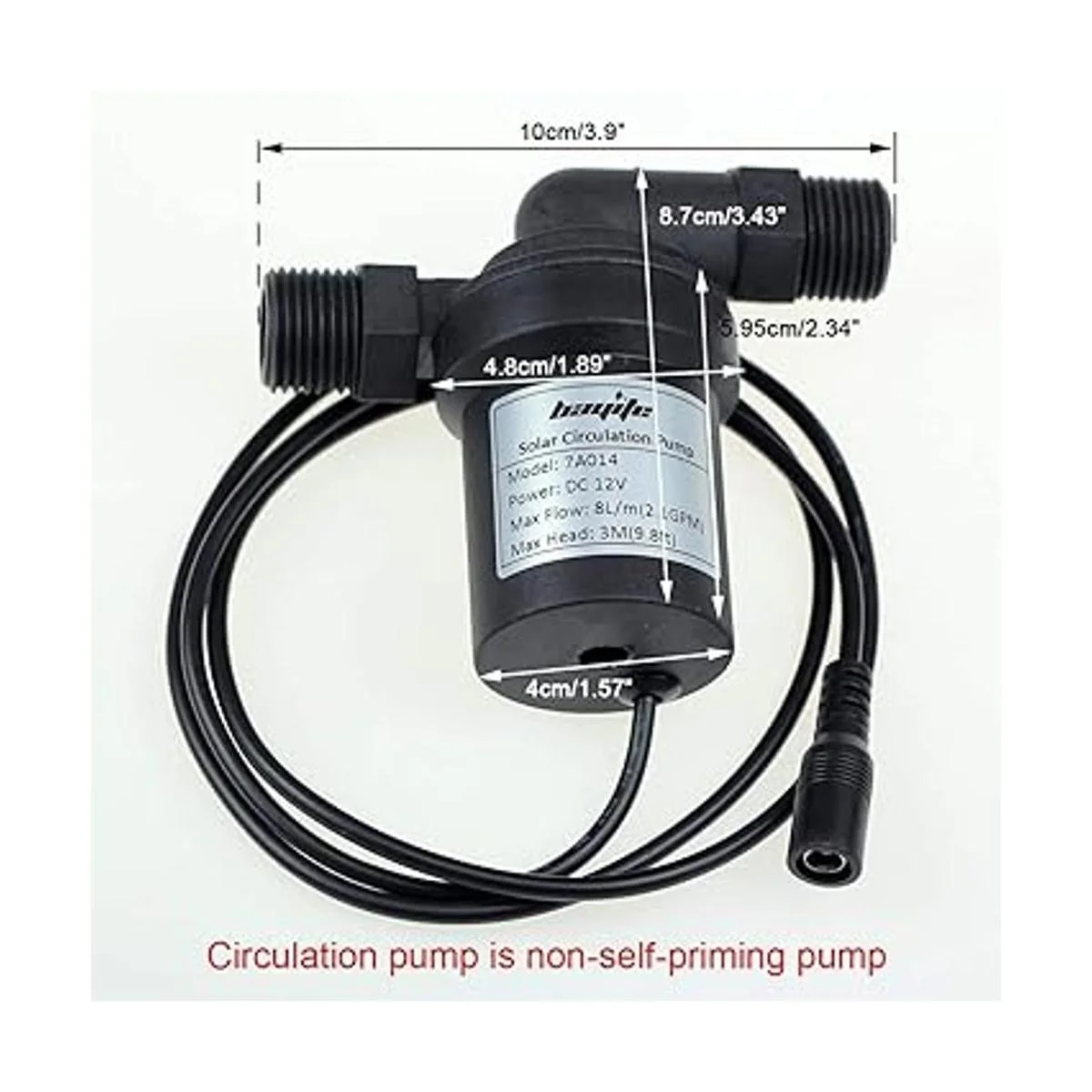 bayite BYT7A014 DC Calentador de agua caliente solar de 12 V, bomba de circulación de bajo ruido, cabezal de descarga 3M de 2.1 GPM