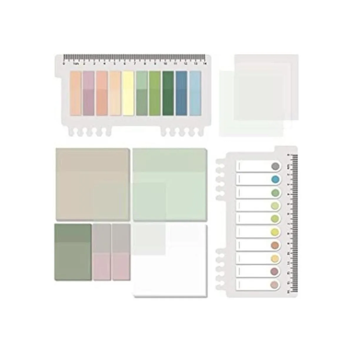 Lo que obtendrás: 150 hojas de notas adhesivas transparentes 3 x 3 pulgadas, 50 hojas de notas adhesivas translúcidas verdes 2.3 x 1.45 pulgadas, 100 hojas de notas adhesivas translúcidas rosas 2.3 x 0.7 pulgadas, 400 hojas de pestañas de diferentes colores 1.8 x 0.4 pulgadas, suficiente en cantidad, suficiente para ser utilizadas durante mucho tiempo. notas adhesivas translúcidas cumplen con tu diversas necesidades de toma de notas.
