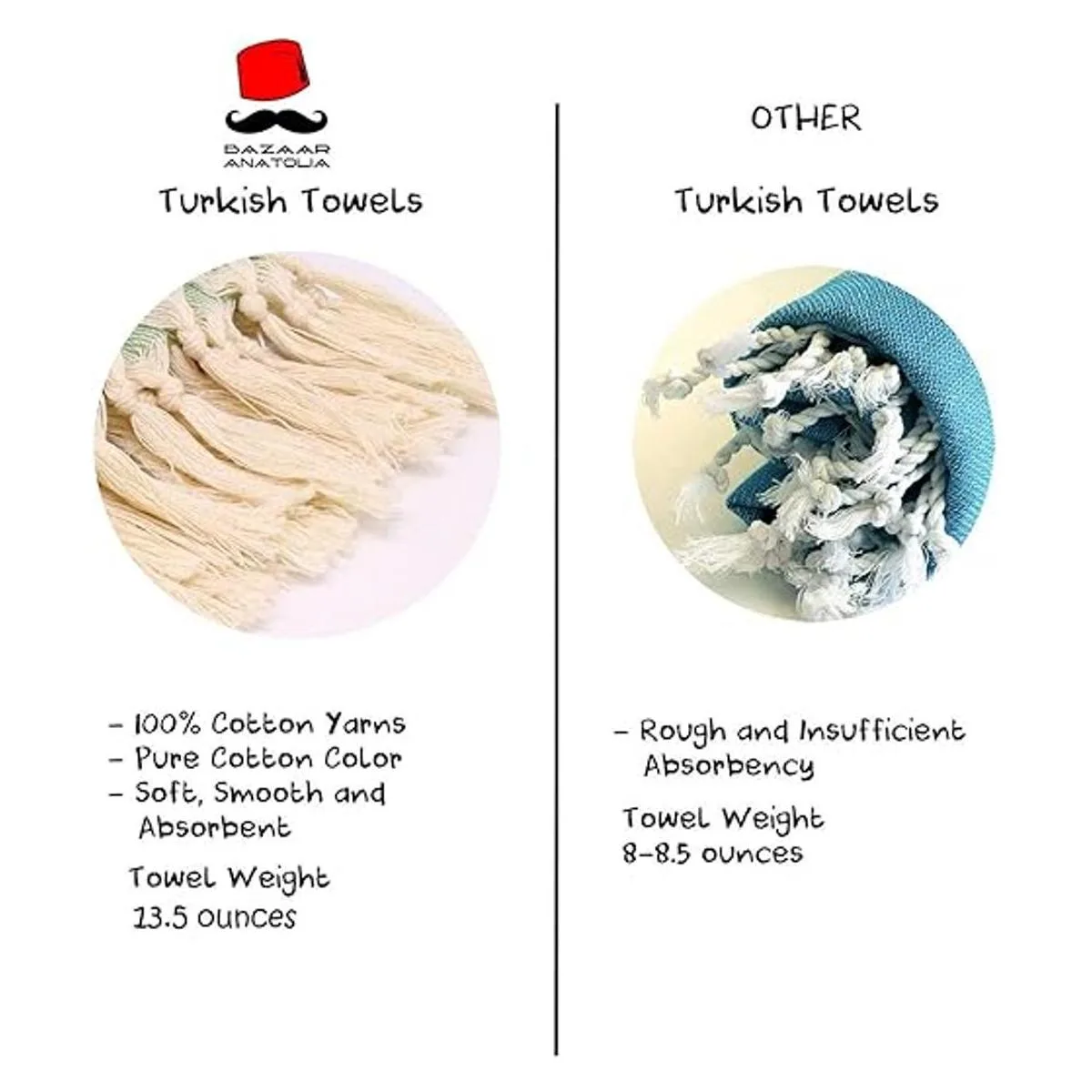 Alta calidad: cada toalla es cuidadosamente revisada y empaquetada por nuestros equipos. Las toallas turcas son suaves y absorbentes con hilos 100 algodón. Nuestras toallas se vuelven más suaves y absorbentes después de varios lavados. También los hilos certificados OEKOTEX garantizan que nuestras toallas de playa están libres de productos químicos nocivos y perfectamente seguras para el uso humano.