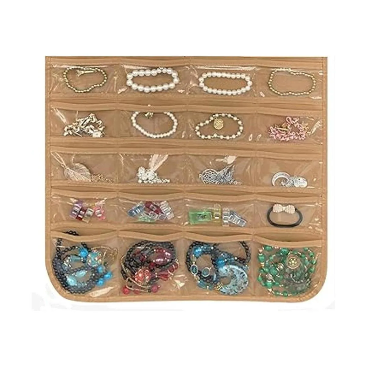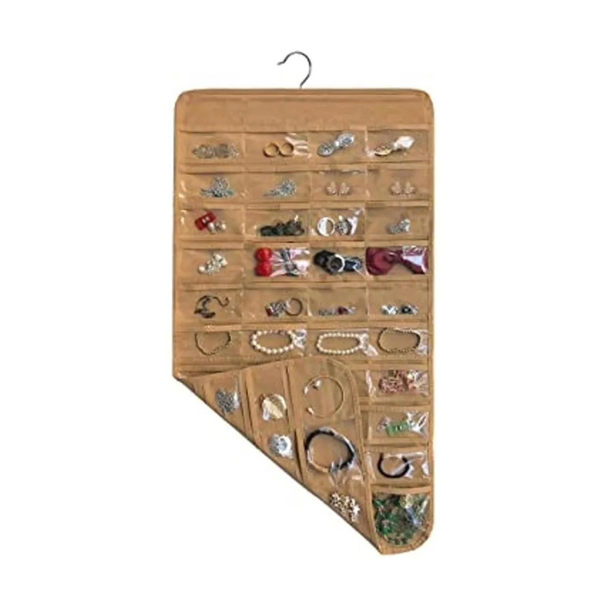 Viene con 80 bolsillos 40 a cada lado. No hay necesidad de guardar todas las joyas juntas y luego desparramarlas por toda la habitación para encontrar los pequeños anillos o aretes. Puedes guardar las joyas en distintos bolsillos transparentes para después no tener que buscarlas.