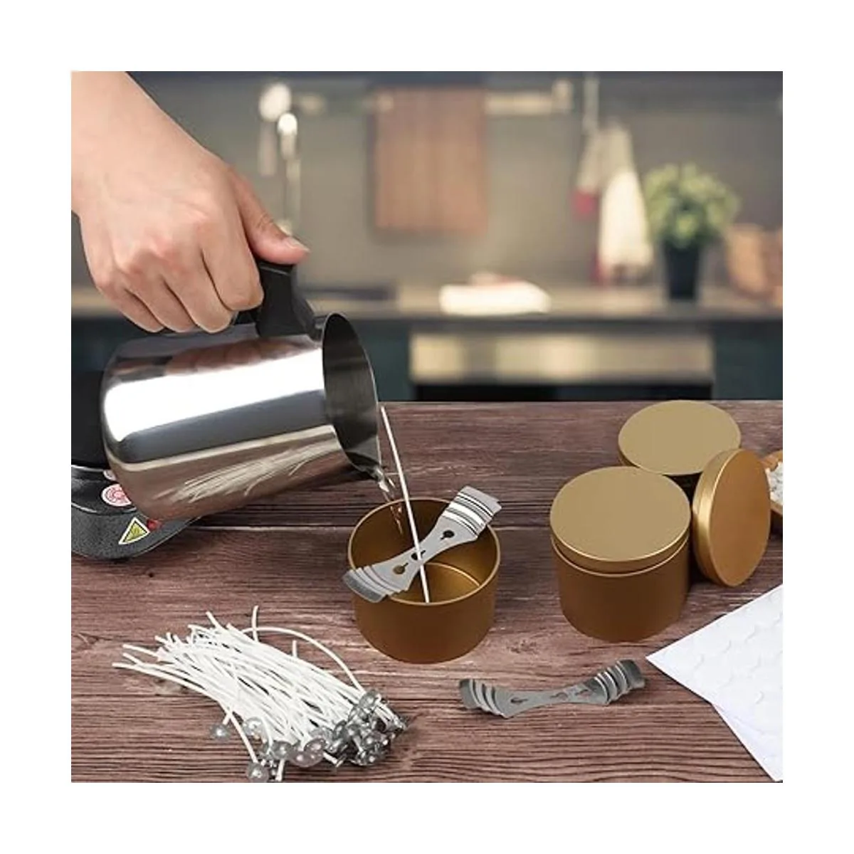 Contenedores versátiles para velas: no solo se pueden utilizar para hacer velas, también se pueden utilizar para almacenar especias y hierbas, aretes, joyas, cosméticos, etc. La lata de vela también es muy fácil de transportar y usar cuando viajas.