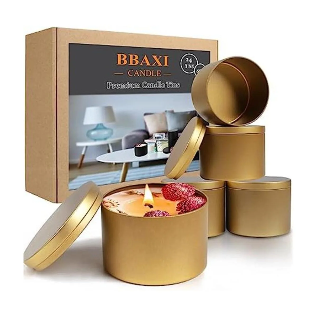 BBAXI 24 latas de velas de 8 onzas, tarros de velas vacíos para hacer velas, contenedores de velas de bricolaje, latas de metal redondas con tapas para hacer velas