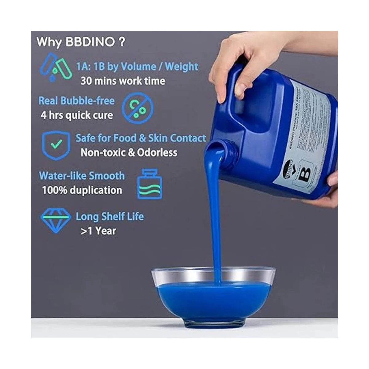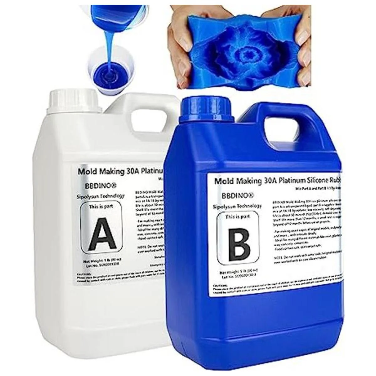 BBDINO Kit de fabricación de moldes de silicona, goma de silicona 30A para hacer moldes de 1 galón10 libras, 11 por volumen, ideal para hacer moldes de silicona de resinas, jabón, hormigón, cera, azul platino