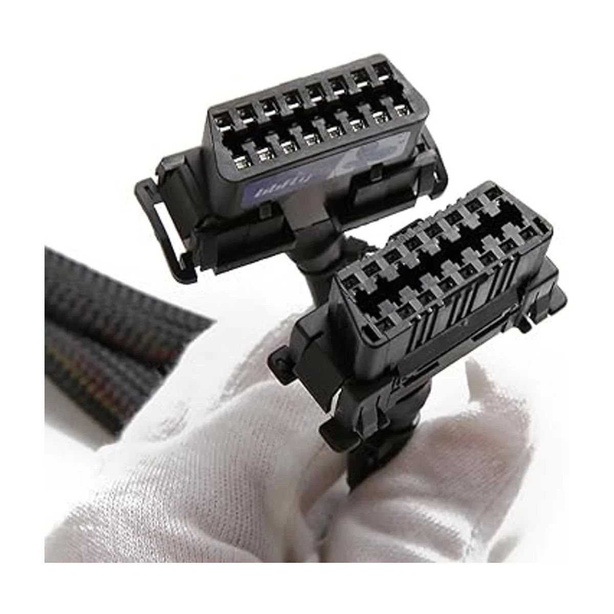 bbflyB6 Adaptador de cable OBD II OBD2 con extensión doble de 16 pines, 1 macho y 2 hembras 2 pies23.6 pulgadas