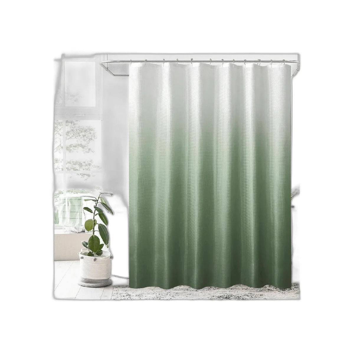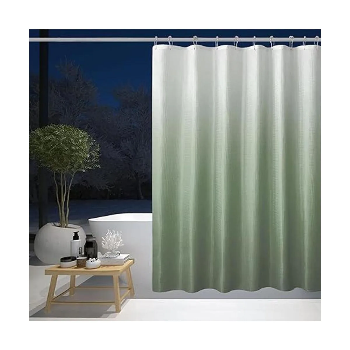 BBiggood Cortina de ducha verde salvia, cortina de ducha de tela de punto gofre ombré con gancho, tela degradada verde y blanca para decoración de baño, juego de cortina de ducha lavable, 72 x 72 pulgadas