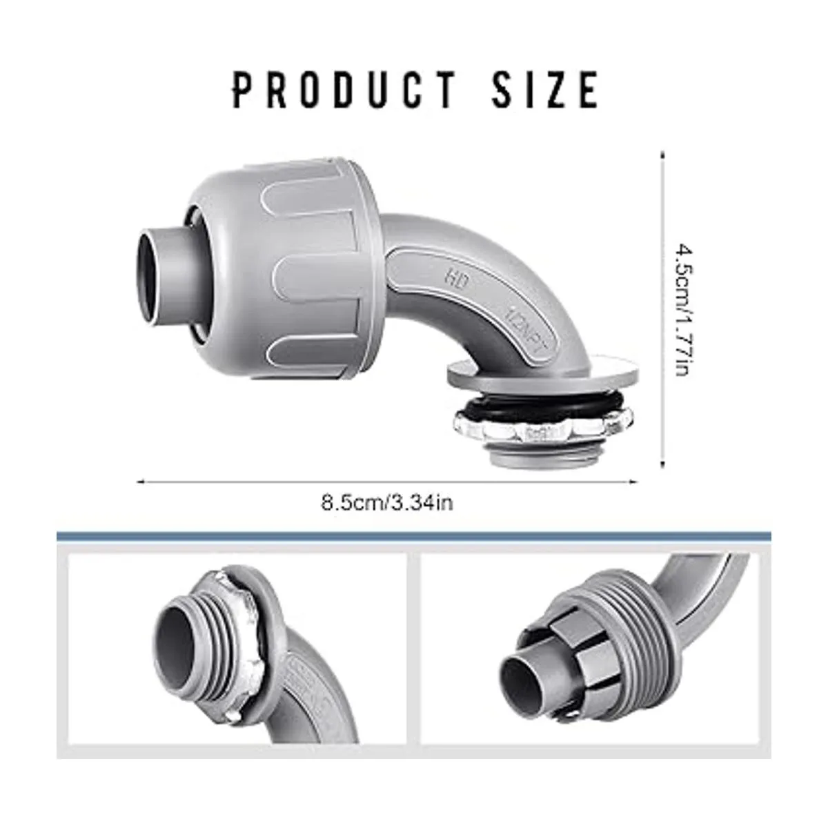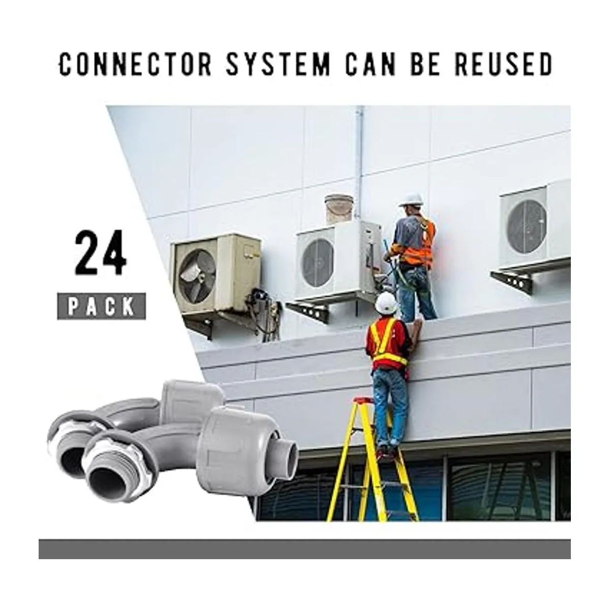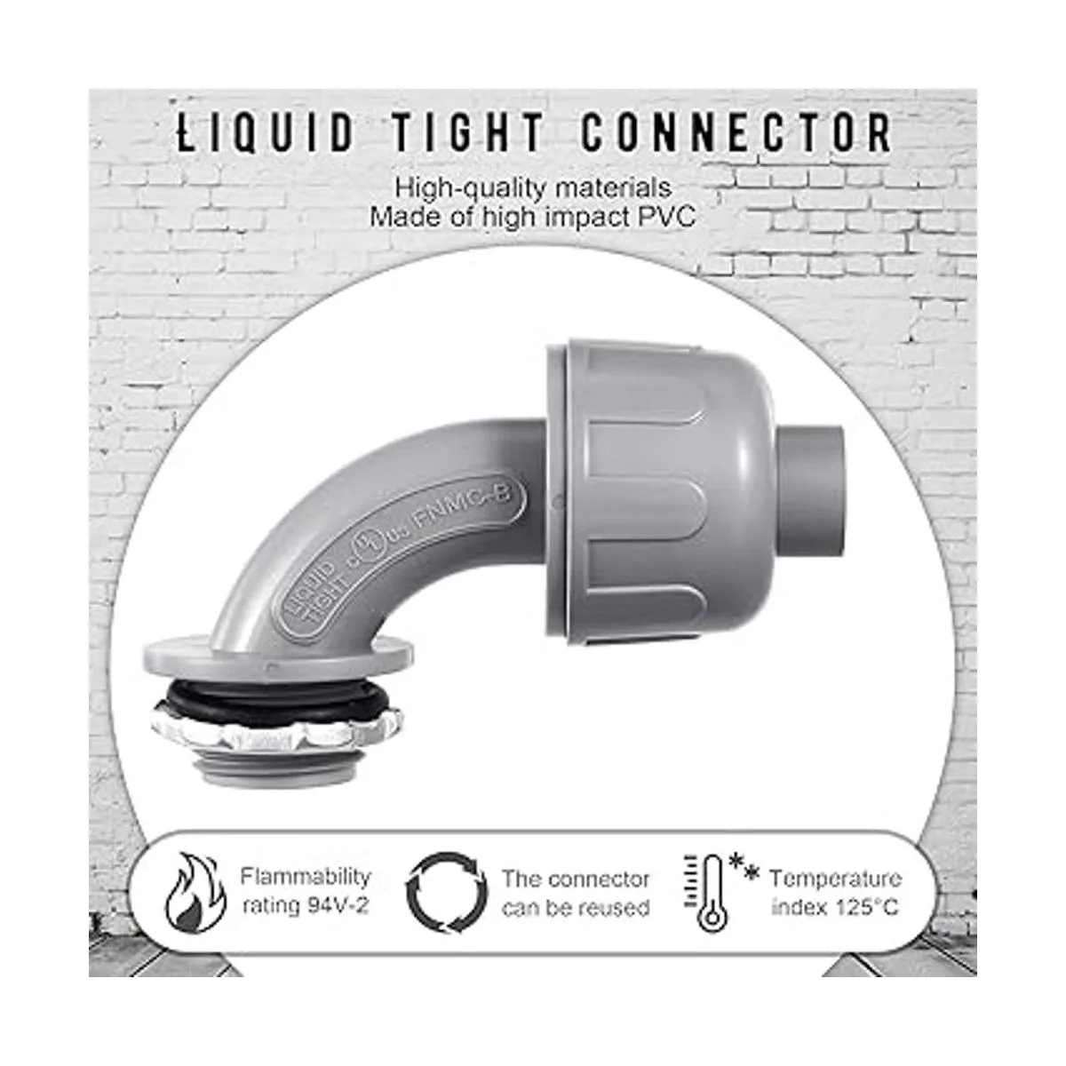 BBTO Conector hermético para líquidos de 12 pulgada, flexible, no metálico, conector de conducto eléctrico de PVC de 90 grados, accesorios de conducto para el hogar, cocina, baño, suministros de herramientas 24 piezas
