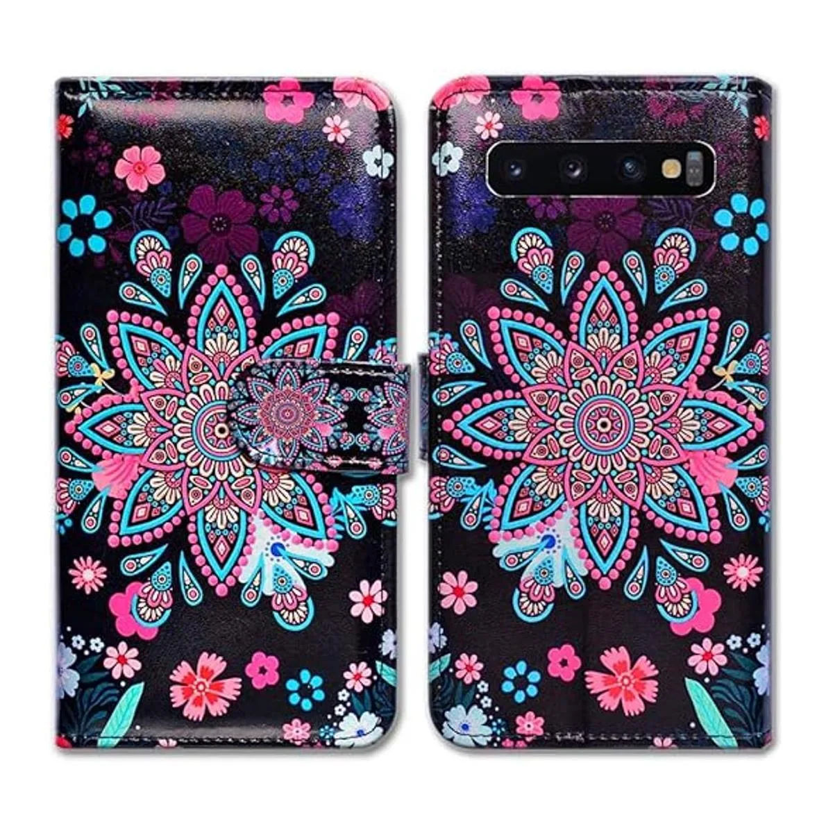 Bcov Funda para Galaxy S10 Plus, funda de piel con diseño de mandala de colores brillantes con soporte para ranura para tarjetas, soporte para Samsung Galaxy S10 PlusS10