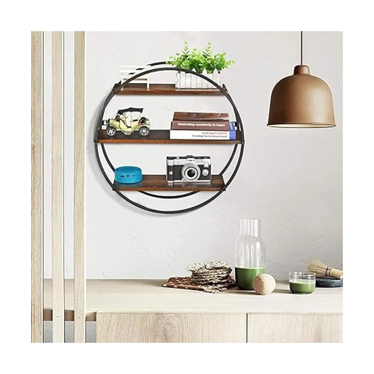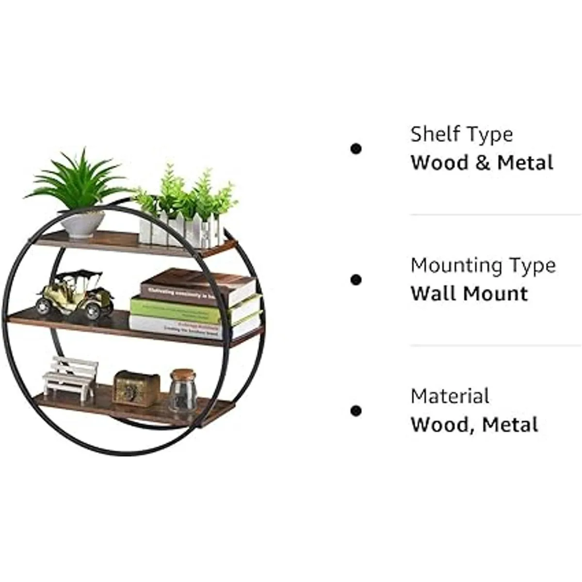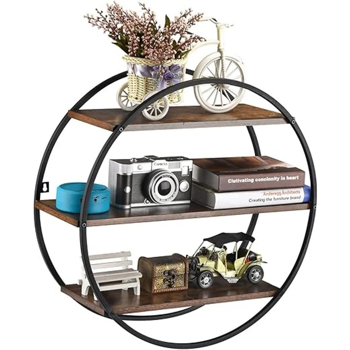 BCOZLUX Estantes flotantes, estantes de pared de metal y madera circulares geométricos decorativos de 3 niveles, estante de baño, decoración de pared redonda, marrón rústico