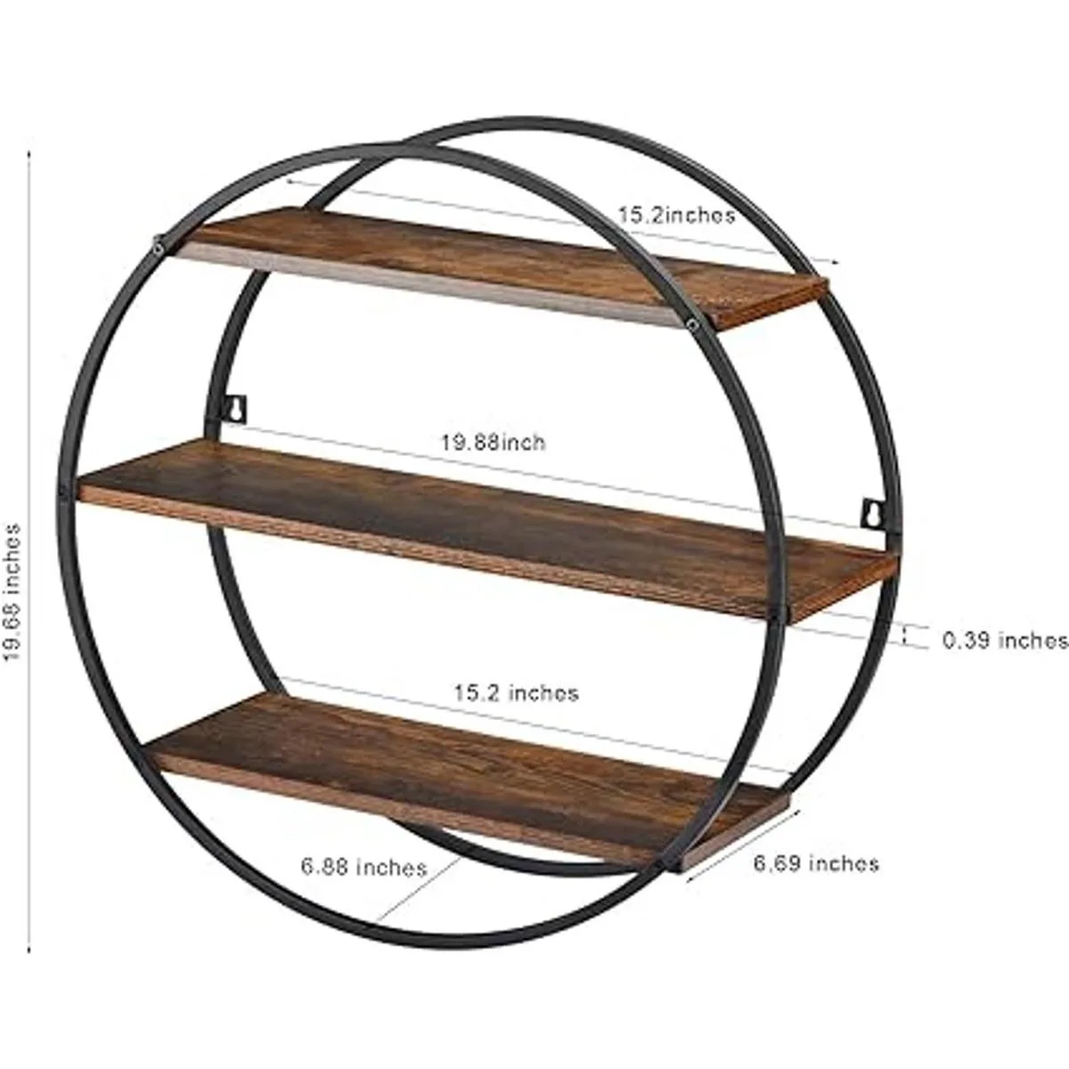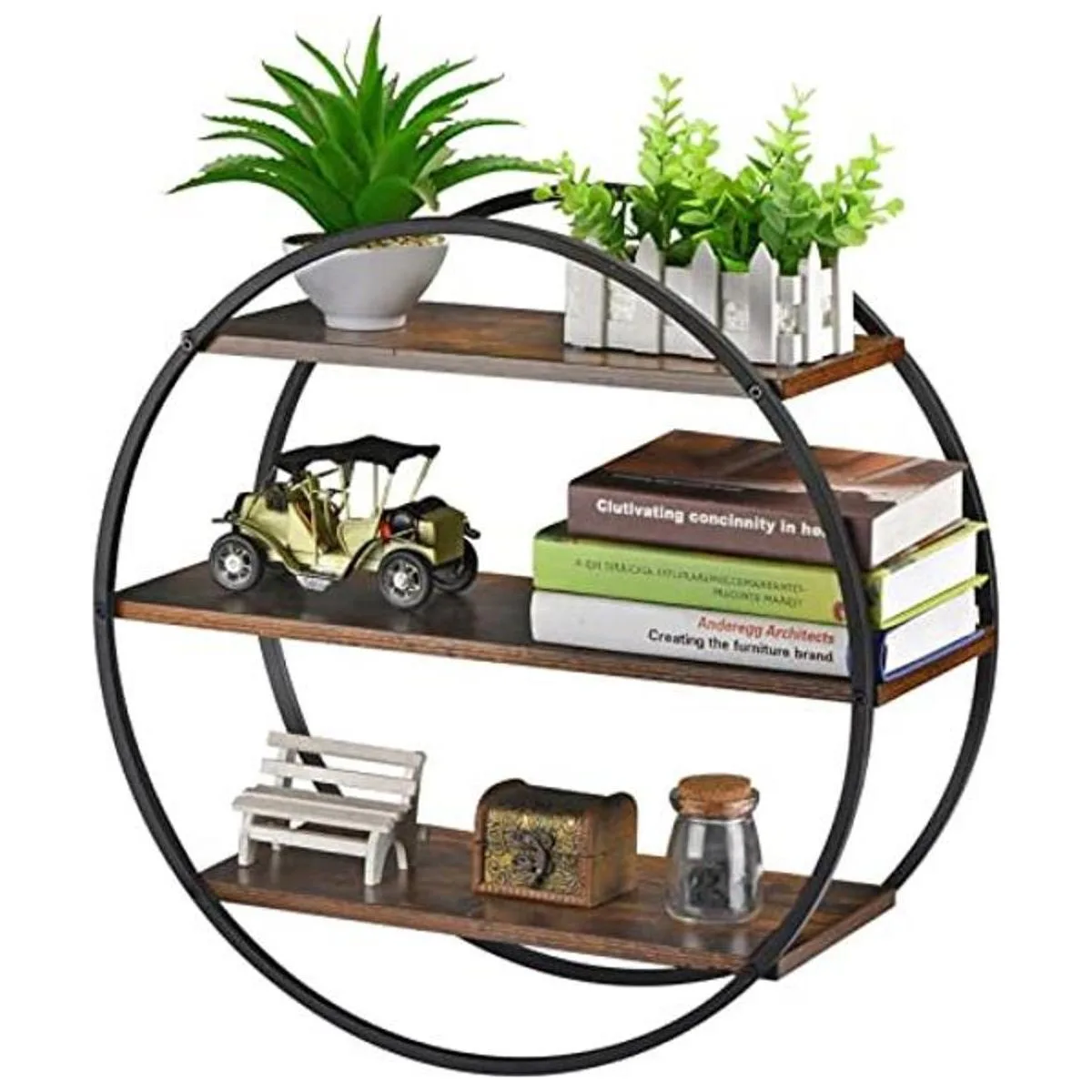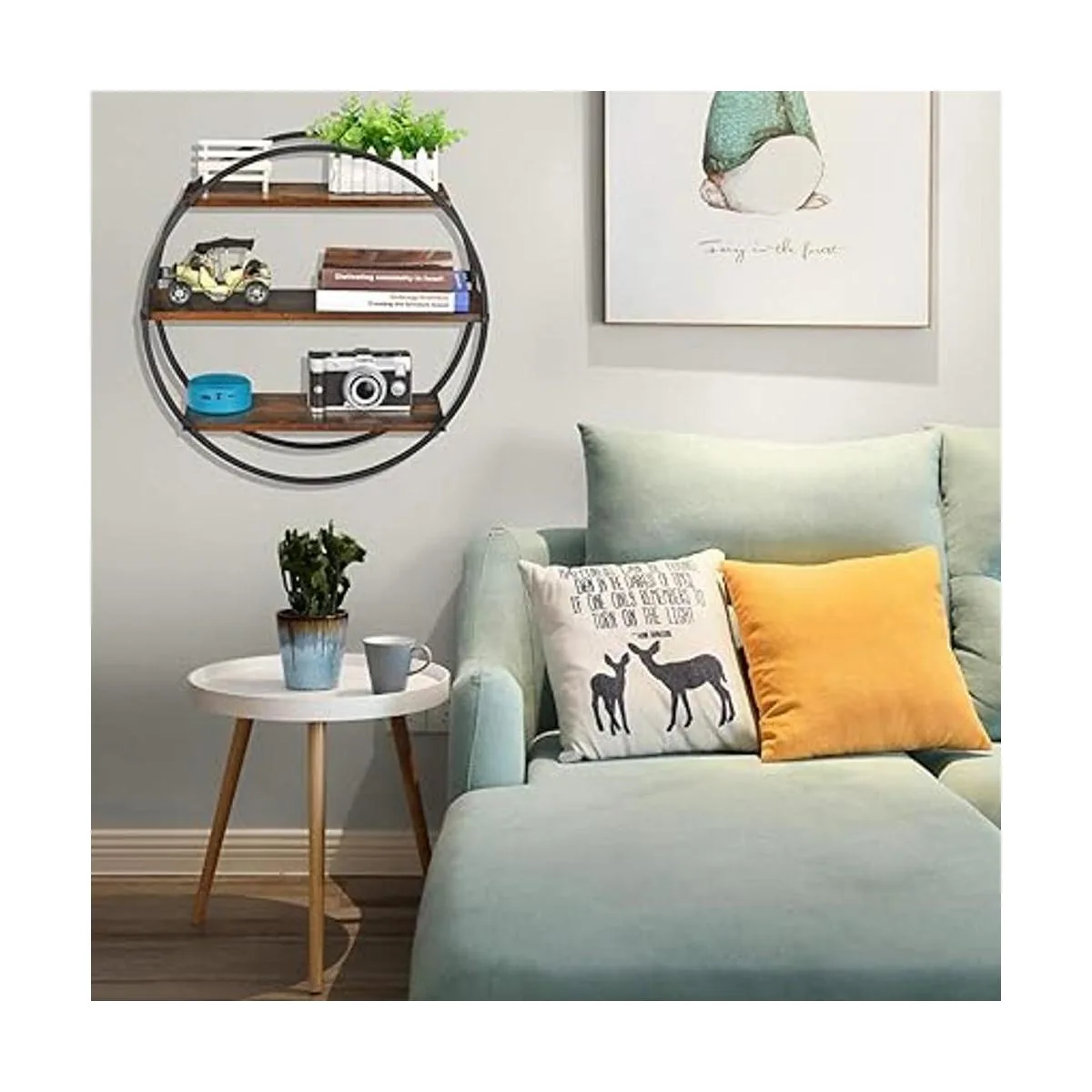 BCOZLUX Estantes flotantes, estantes de pared de metal y madera circulares geométricos decorativos de 3 niveles, estante de baño, decoración de pared redonda, marrón rústico