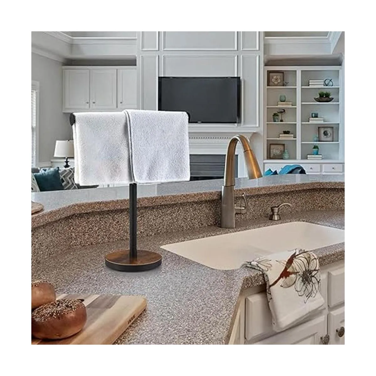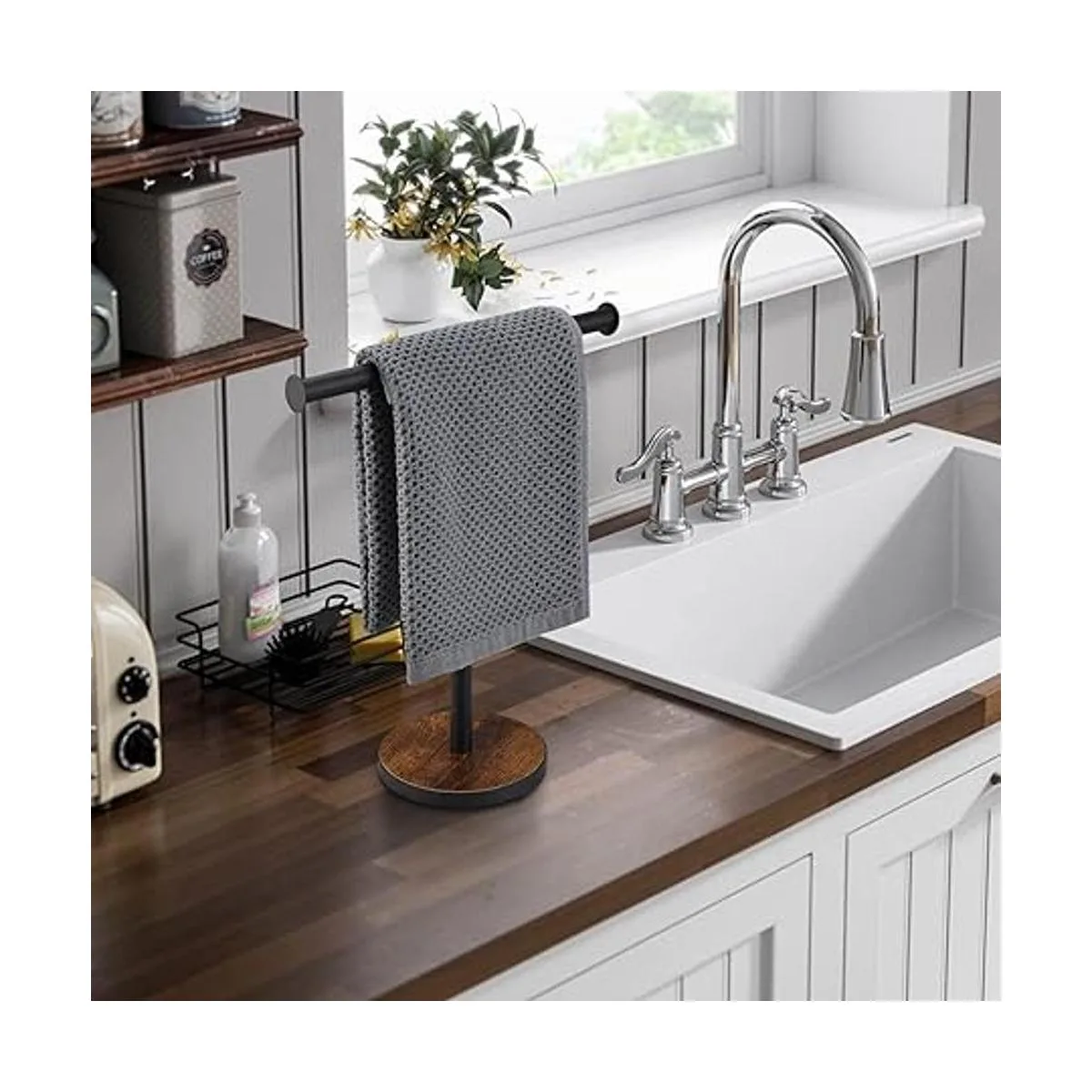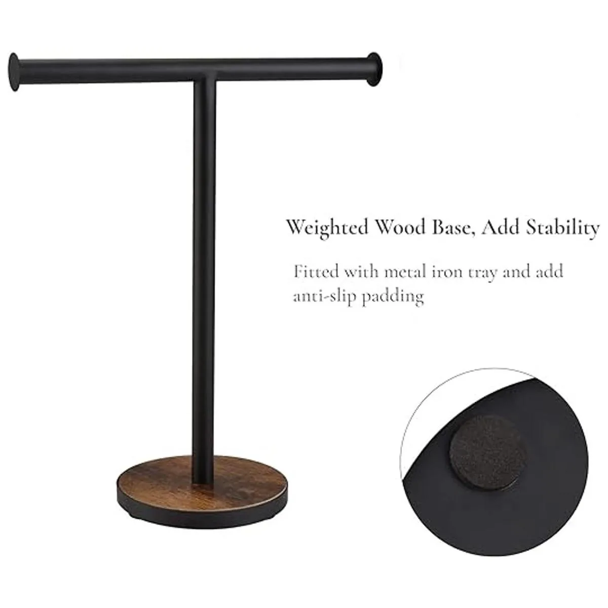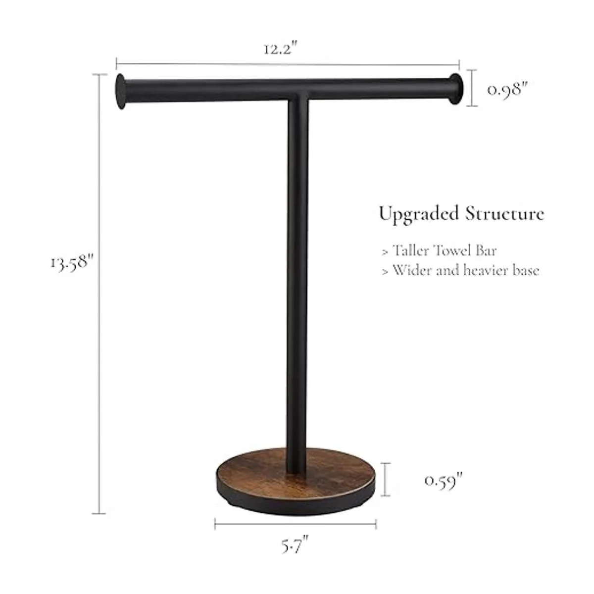 BCOZLUX Soporte para toallas, soporte de toalla de mano para encimera para baño y cocina, toallero de pie independiente con base de madera pesada, color negro rústico y marrón