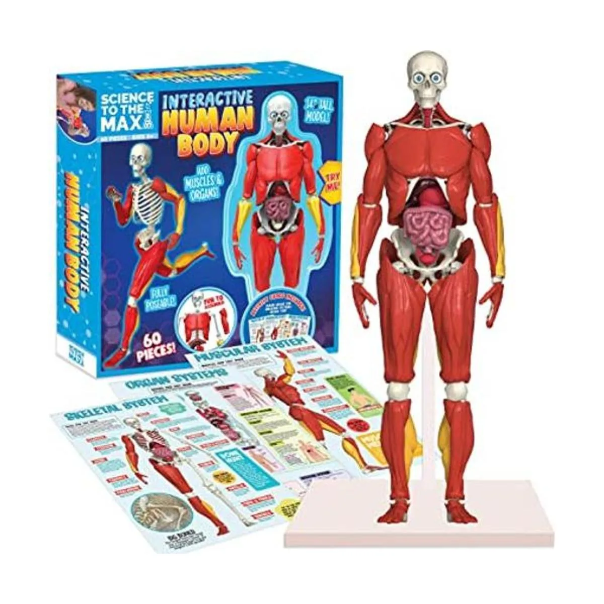 Todo lo que necesitas está incluido: nuestro modelo de cuerpo humano para niños viene con 60 piezas para que puedas montar, desmontar y volver a juntarlo. Completo con huesos, músculos y órganos, además de un soporte ajustable para ayudar a tu cuerpo humano a probar infinitas posturas